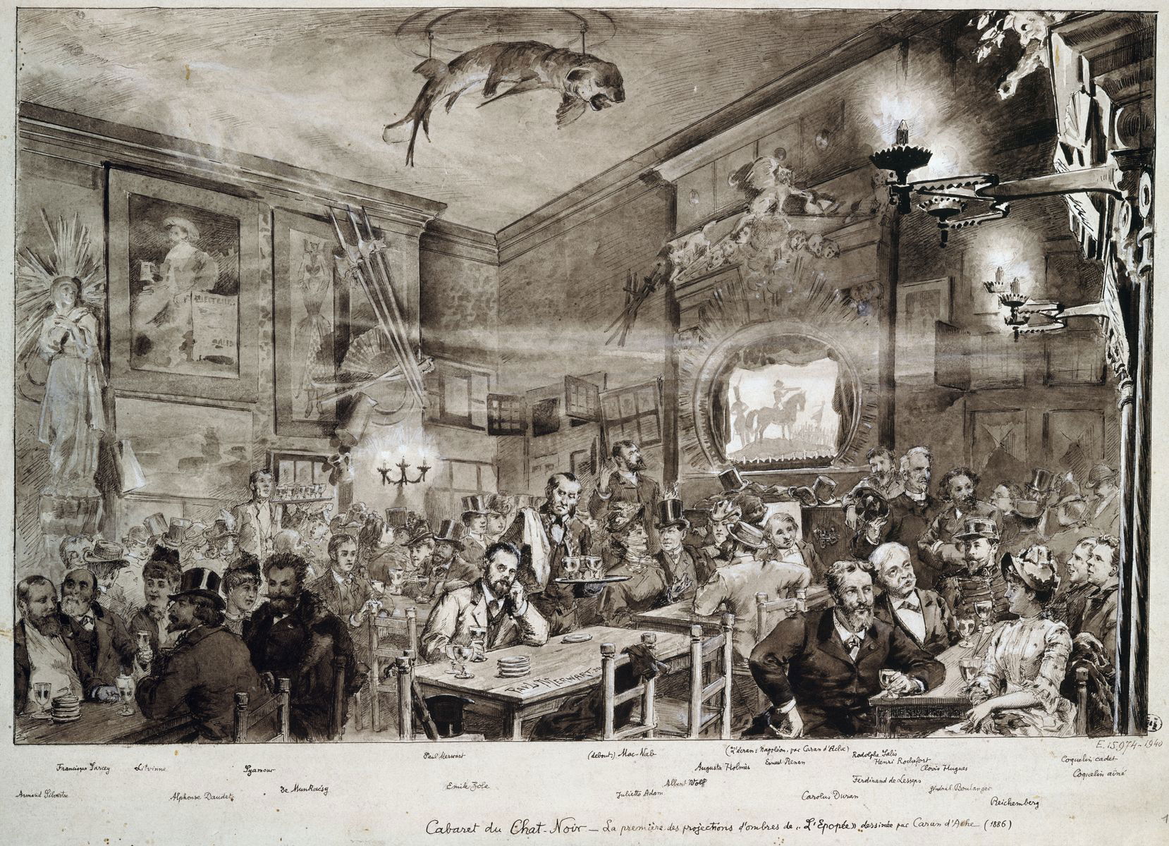 Le Chat Noir, à Montmartre, devient un haut lieu du cabaret artistique grâce aux spectacles d’ombres de Caran d’Ache.
