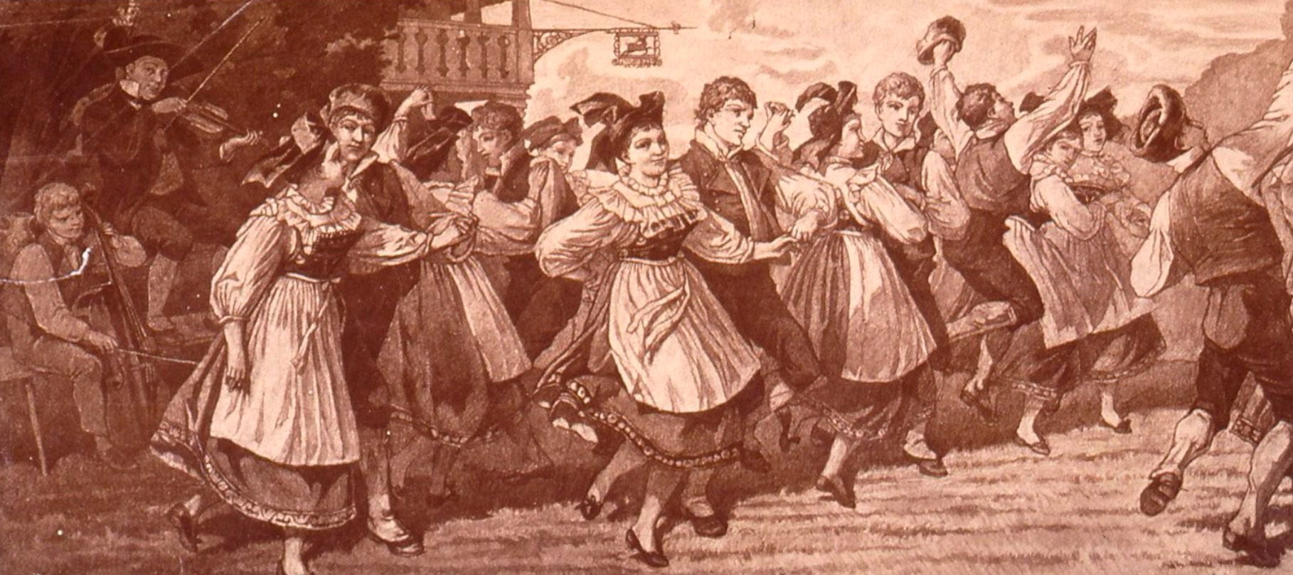 Aux années 1800, chaque commune possède ses moments de danse : fêtes patronales, foires agricoles, moissons, conscrits, mariages. On dresse un parquet provisoire, on tend une toile pour abriter les musiciens. Un violon, une clarinette, parfois une cabrette ou un accordéon suffisent. La danse est alors un des rares loisirs collectifs accessibles à tous.