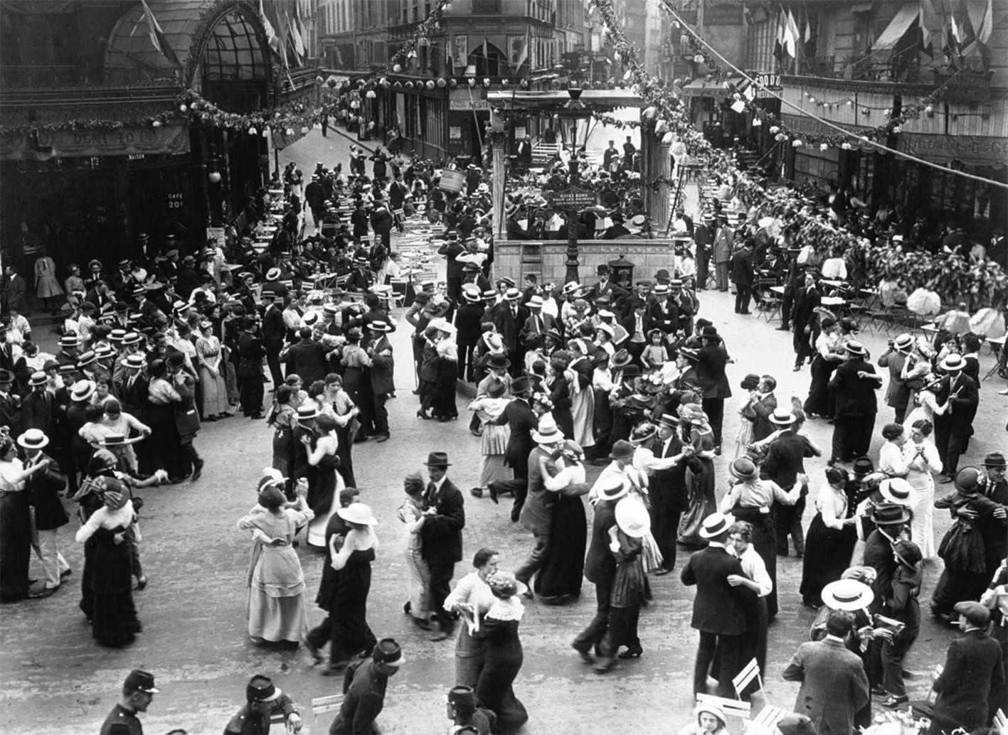 Bal populaire du 14 juillet 1914, rue Montmartre. Agence Meurisse. Source gallica.bnf.fr / BnF