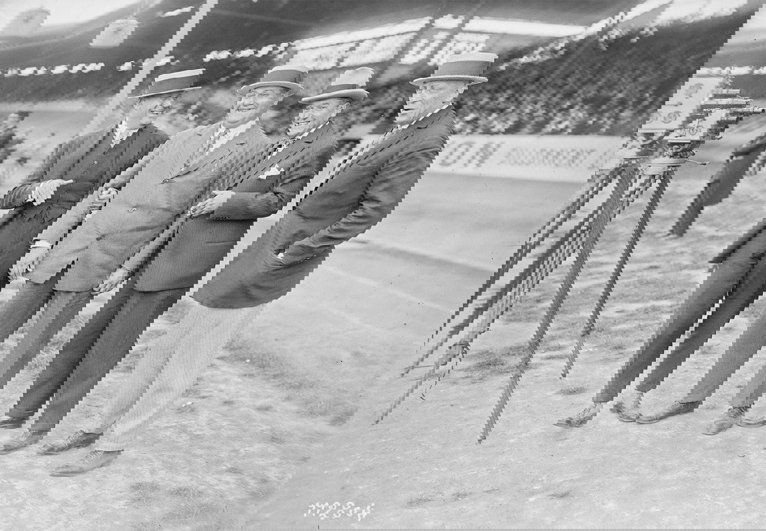Fête des Caf' Conc'. Stade Buffalo De gauche à droite : Dranem, Michel, Tramel, Pélissier (comiques) Agence Rol. 13.09.1926. Source gallica.bnf.fr / BnF.