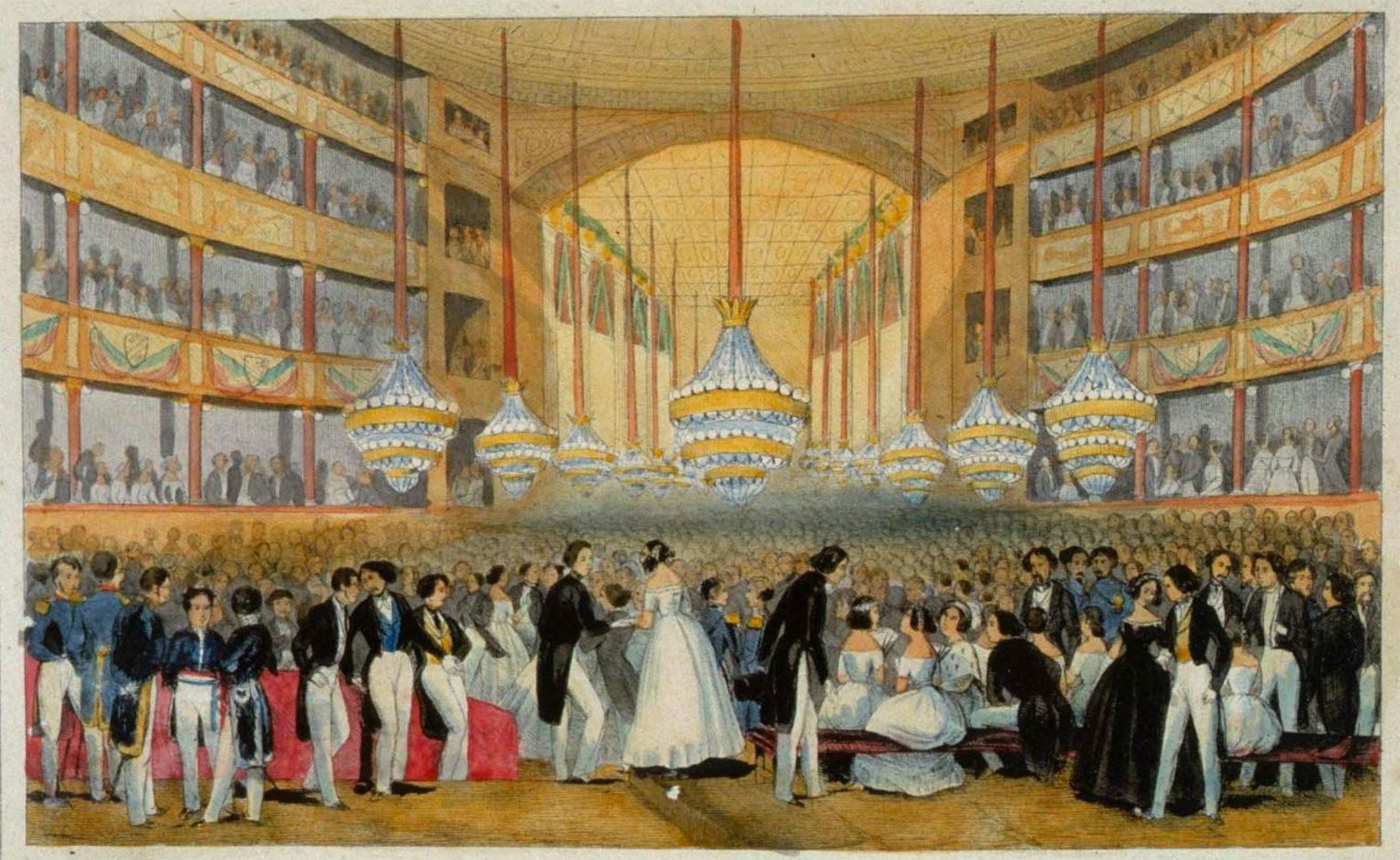Fêtes Gutenberg à Strasbourg, 3e journée : Bal à la Salle de Spectacle, le 26 Juin 1840. Frédéric-Emile Simon, (1805-1886). Source gallica.bnf.fr / BnF.