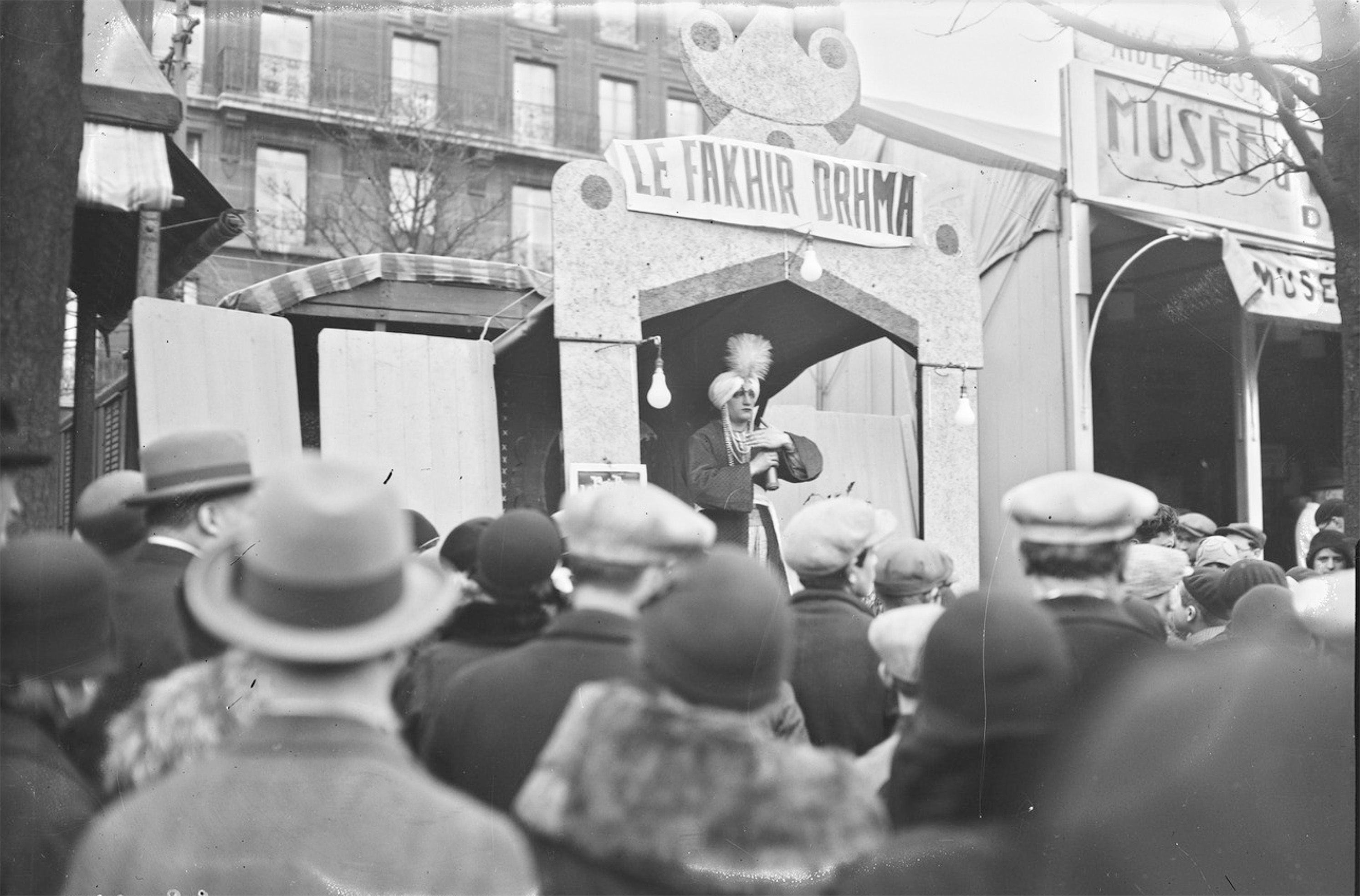 Foire du Trône (spectacle du fakhir Drhma) (Paris, 27- 3-32). Photographie de presse. Agence Rol. 1932. Source gallica.bnf.fr / BnF.