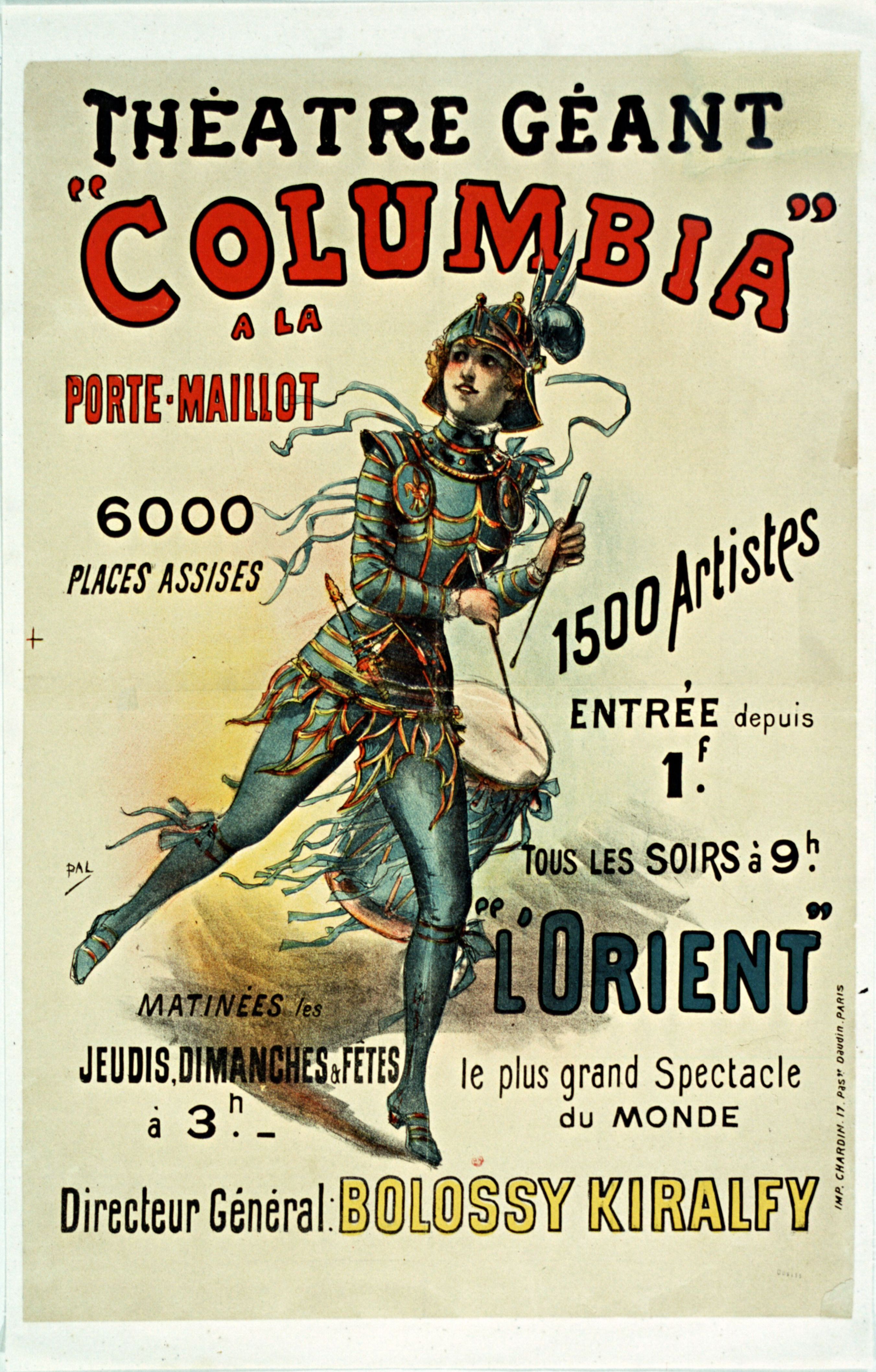 Affiche pour le théâtre Columbia porte Maillot. 1890. (Gallica)