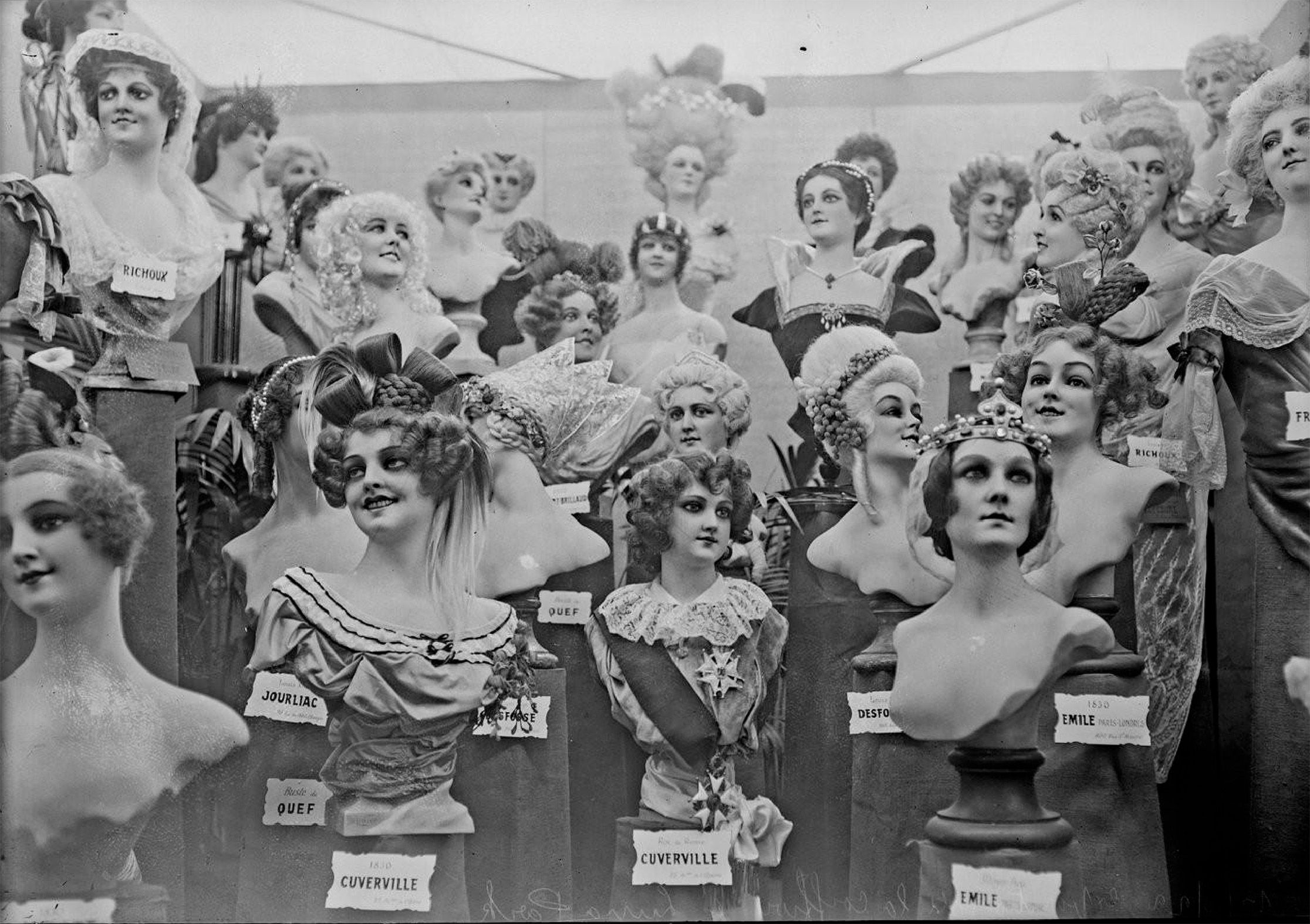 Exposition de la coiffure à Luna Park. Photographie de presse. Agence Rol. 13 octobre 1922. Source gallica.bnf.fr / BnF