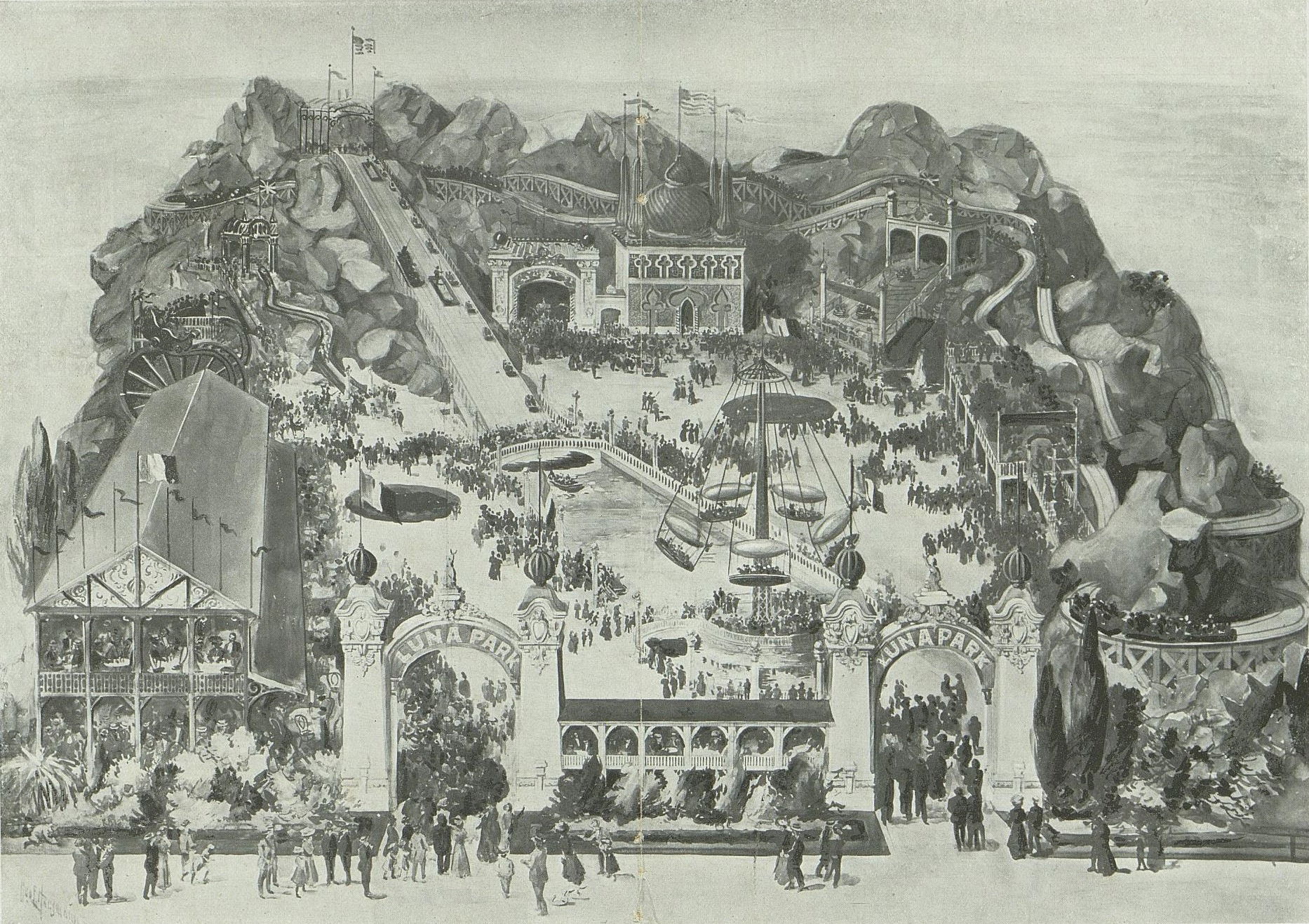 Galerie des Phénomènes : Comme dans de nombreux parcs et foires de l'époque, Luna Park pouvait présenter des "curiosités humaines" ou des "phénomènes de foire" (par exemple, une "femme-singe" est citée), une pratique aujourd'hui largement révolue et considérée comme non éthique