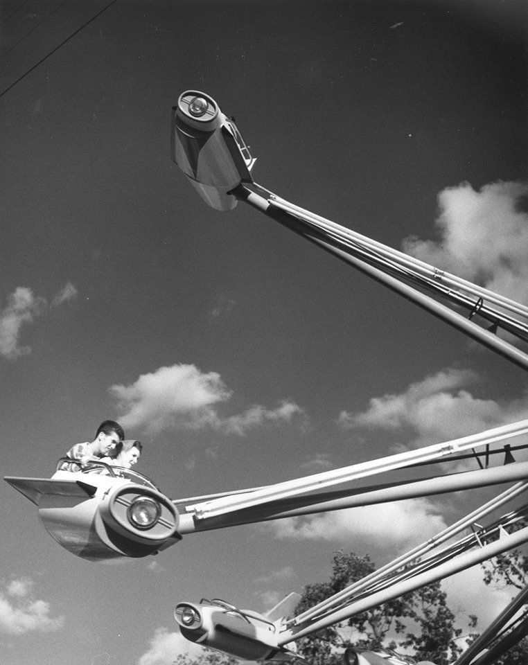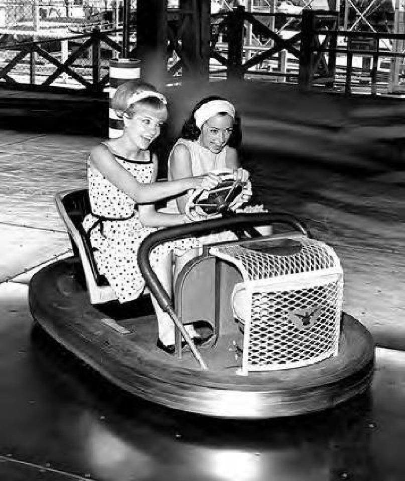 Chicago. Parc d'attractions Riverview. Deux filles conduisant des voitures bump 'em. 1966. Photo du Chicago Tribune.