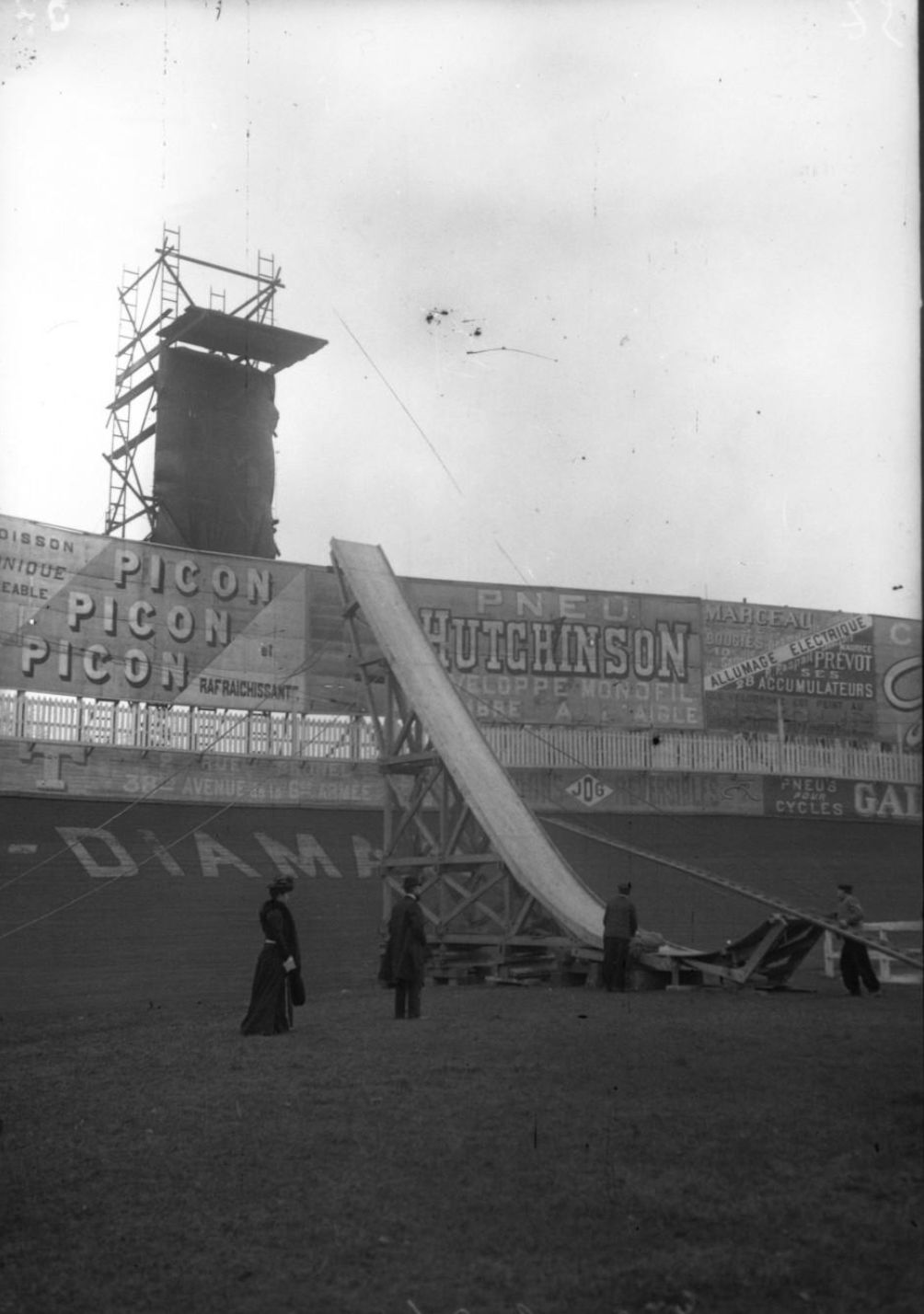 Appareil de Gadbin [tremplin pour un vélo, 2 février 1908 à Buffalo. Photographie de presse : Agence Rol. 1908. Source : gallica.bnf.fr / BnF