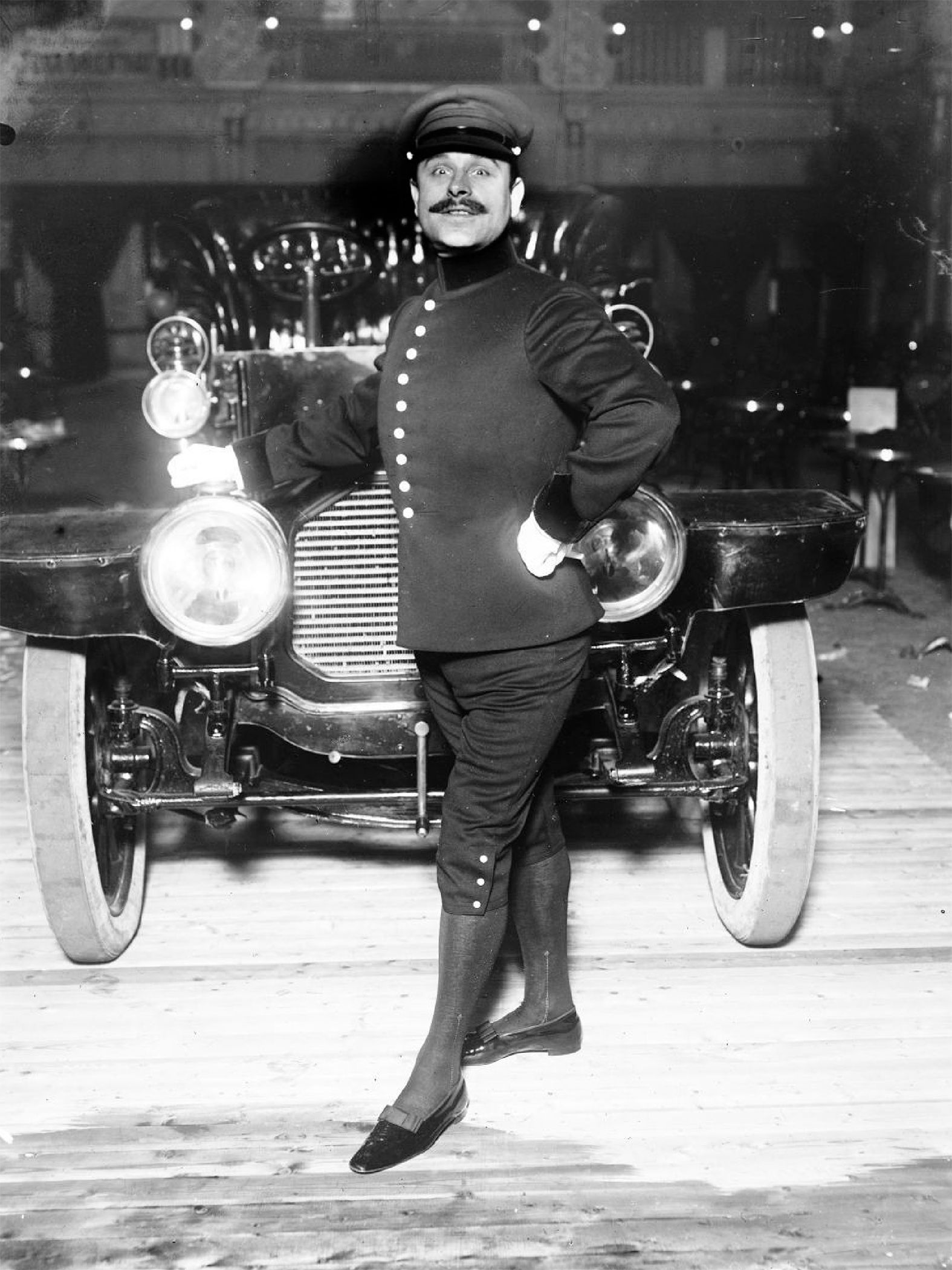Le principe du numéro est d’une brutalité spectaculaire assumée : Gadbin s’allonge sur le dos, sur une plateforme spécialement aménagée, tandis qu’une automobile de 40 chevaux, symbole éclatant de la puissance industrielle naissante, lui passe lentement sur le ventre. Le véhicule, loin d’être vide ou allégé, transporte jusqu’à six spectateurs, renforçant la véracité et la tension de la démonstration. Aucun trucage n’est dissimulé : la performance repose uniquement sur la résistance physique de l’artiste et sur la précision du dispositif.