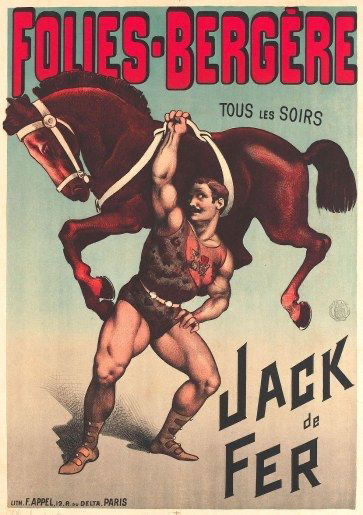 Connu pour ses démonstrations de puissance spectaculaires, notamment des numéros de portés et de résistance, il se produisit dans les grandes salles parisiennes, en particulier aux Folies-Bergère, haut lieu du divertissement populaire. Son nom de scène, Jack de Fer, participe pleinement à l’imaginaire forain de l’époque, évoquant une force brute, presque mythique, destinée à frapper l’imagination du public.