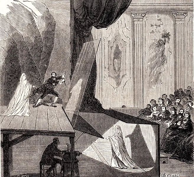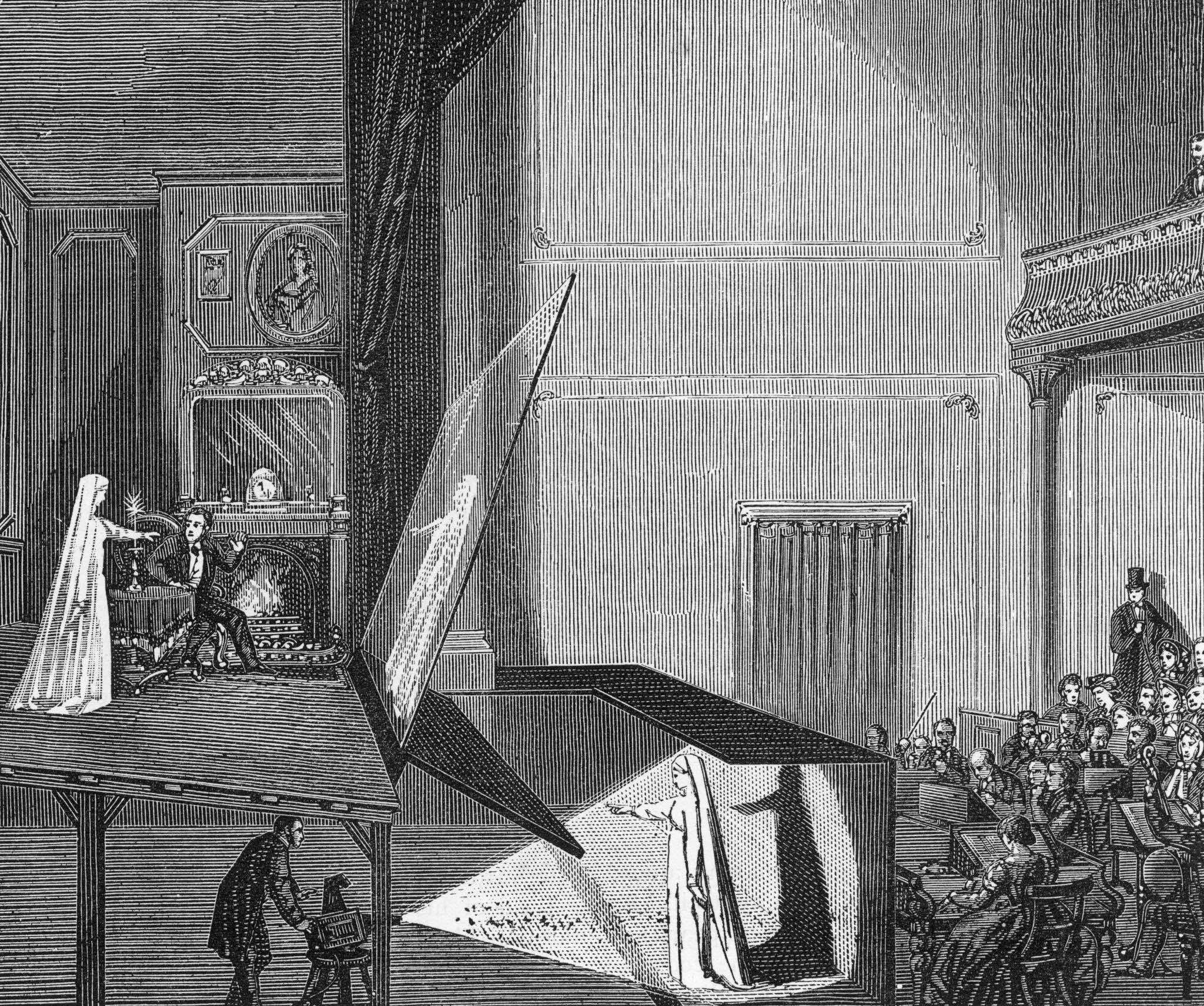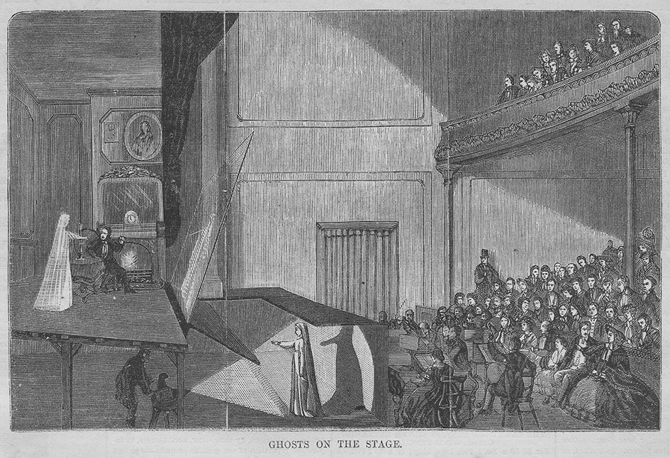 Au milieu du XIXᵉ siècle apparaît l’une des illusions scéniques les plus célèbres de l’histoire du théâtre : le « fantôme de Pepper ». Ce procédé optique permet de faire apparaître sur scène des personnages translucides, comme des spectres surgissant dans l’espace réel devant les spectateurs.
