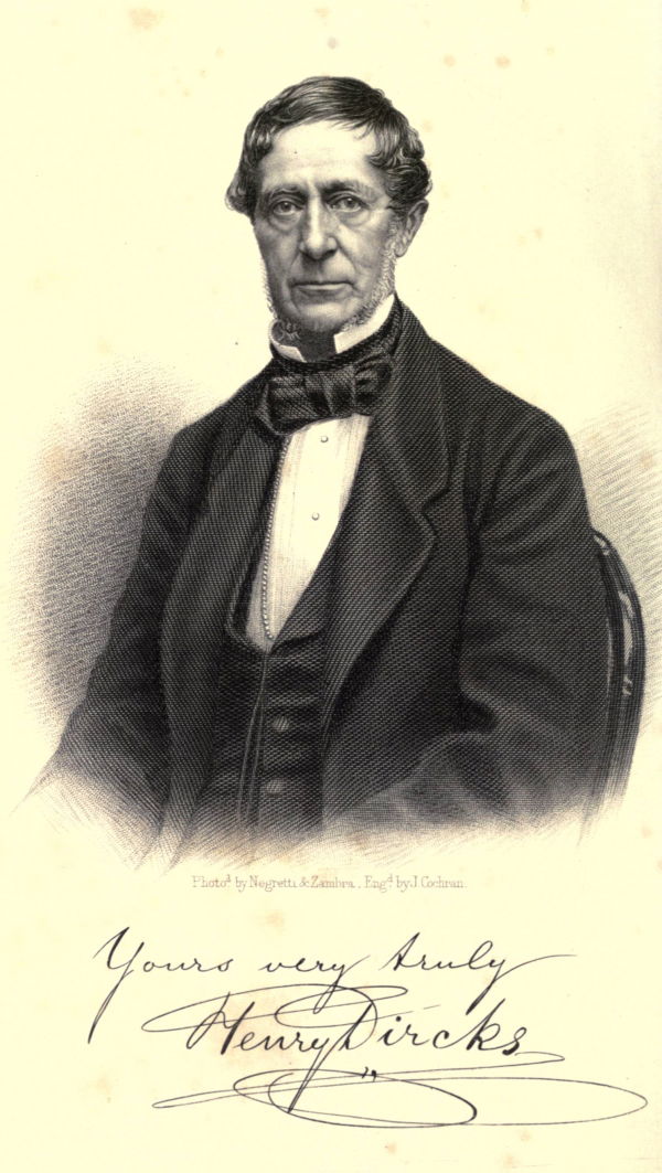 Henry Dircks est un ingénieur et inventeur britannique né en 1806. Passionné par les machines, l’architecture et les dispositifs optiques, il s’intéresse également à l’histoire des inventions et des automates.