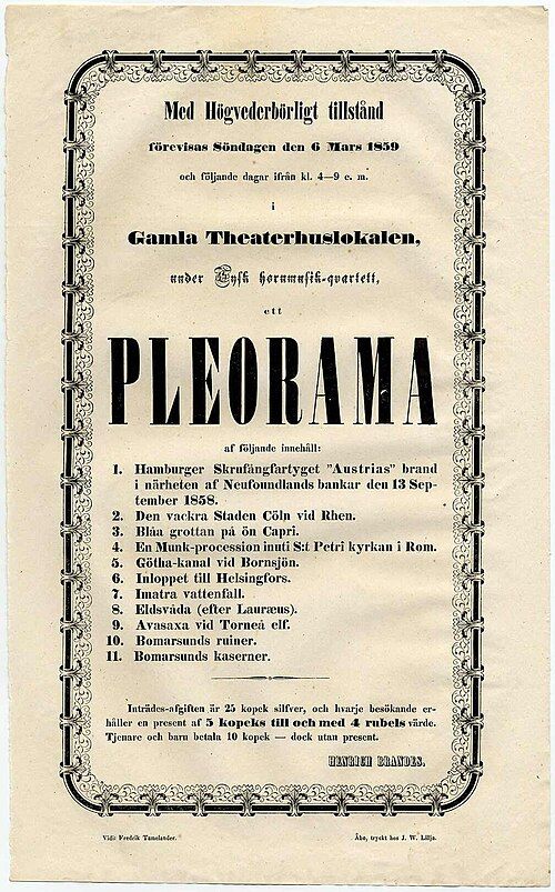 Affiche annonçant un spectacle de Pleorama – 1858.