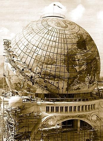 Construction d’un géorama spectaculaire boulevard des Capucines : les visiteurs pénètrent à l’intérieur d’un immense globe dont la surface de la Terre est peinte sur la paroi intérieure.