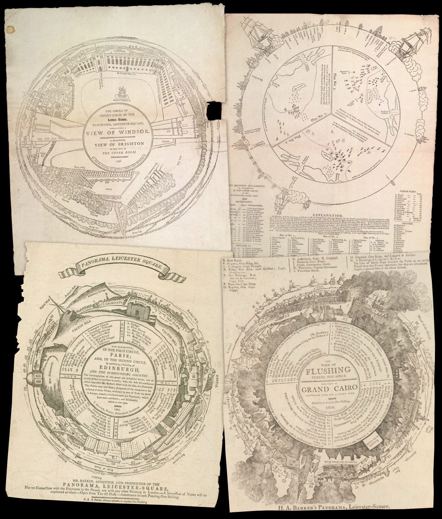 Plans circulaires des panoramas de Robert Barker, Leicester Square, Londres (fin XVIIIᵉ – début XIXᵉ siècle).