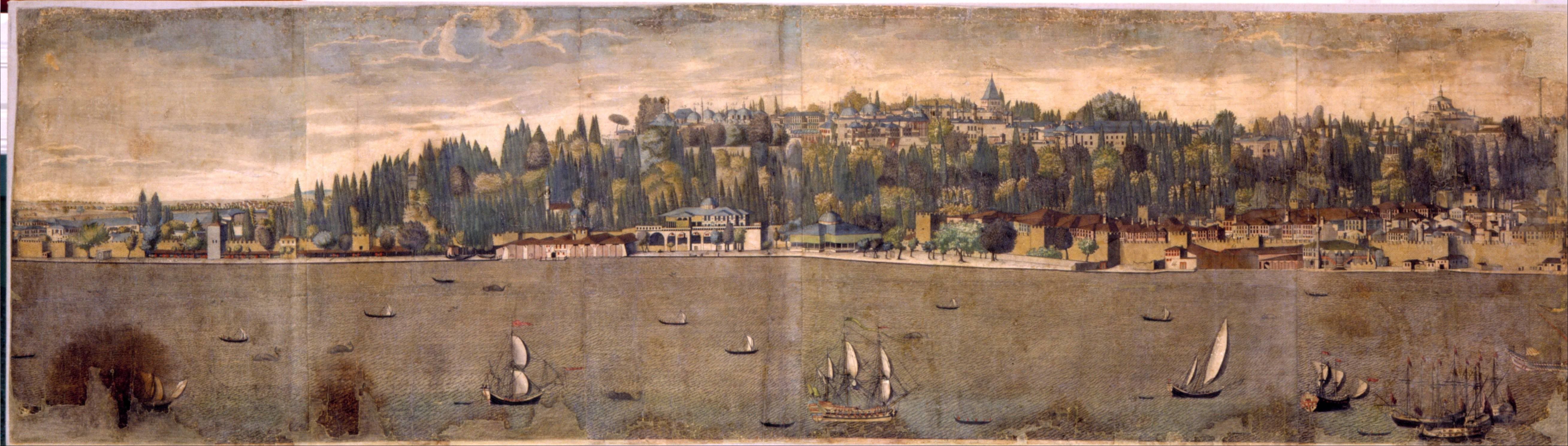 Vue panoramique de Constantinople (Istanbul) et du Bosphore, XIXᵉ siècle.