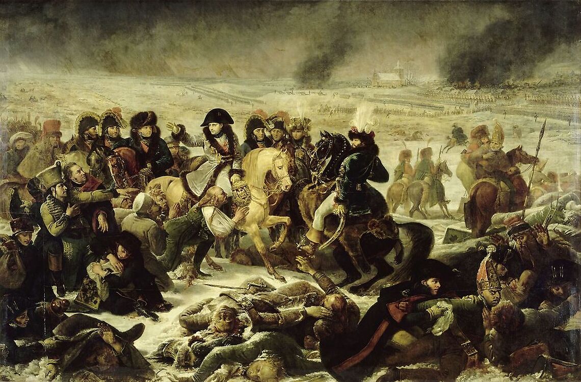 Affrontement entre les armées de Napoléon Ier et les forces russes et prussiennes, célèbre pour ses combats dans la neige.