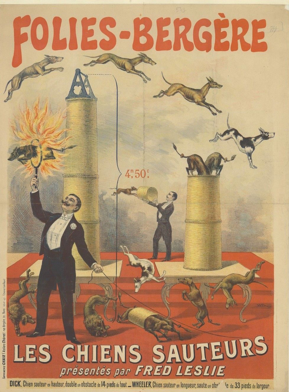 Folies Bergère. Les Chiens sauteurs. Affiche non identifiée. 1897. Source gallica.bnf.fr / BnF.