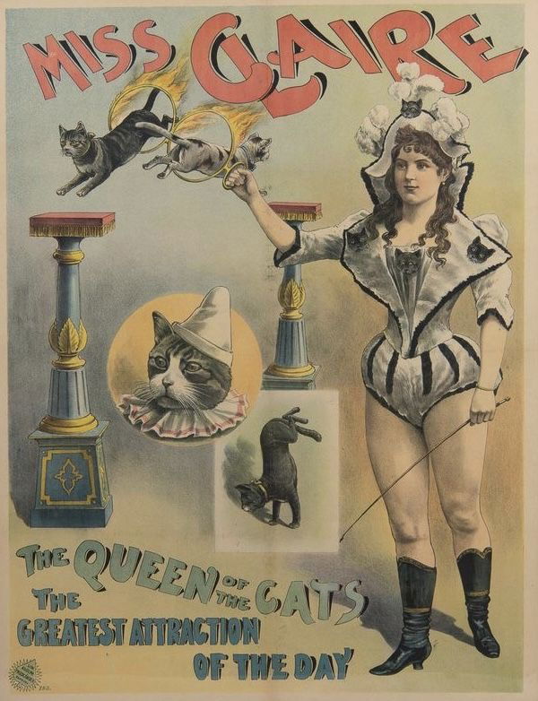 Active à la fin du XIXᵉ siècle et au début du XXᵉ siècle (vers 1890–1910), Miss Claire est une artiste de cirque spécialisée dans le dressage de chats, une discipline particulièrement rare et réputée difficile. Son numéro repose sur la patience, la répétition et une grande finesse de communication avec les animaux, présentés comme des chats savants exécutant sauts, équilibres et passages à travers des cerceaux.