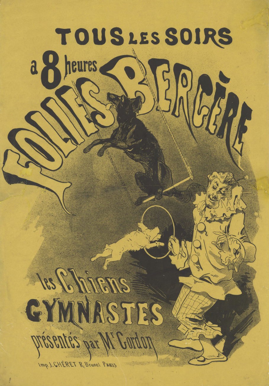 Les chiens gymnastes présentés par Mr Gordon : affiche / lithographie de Jules Chéret. 1874. Source : gallica.bnf.fr / BnF