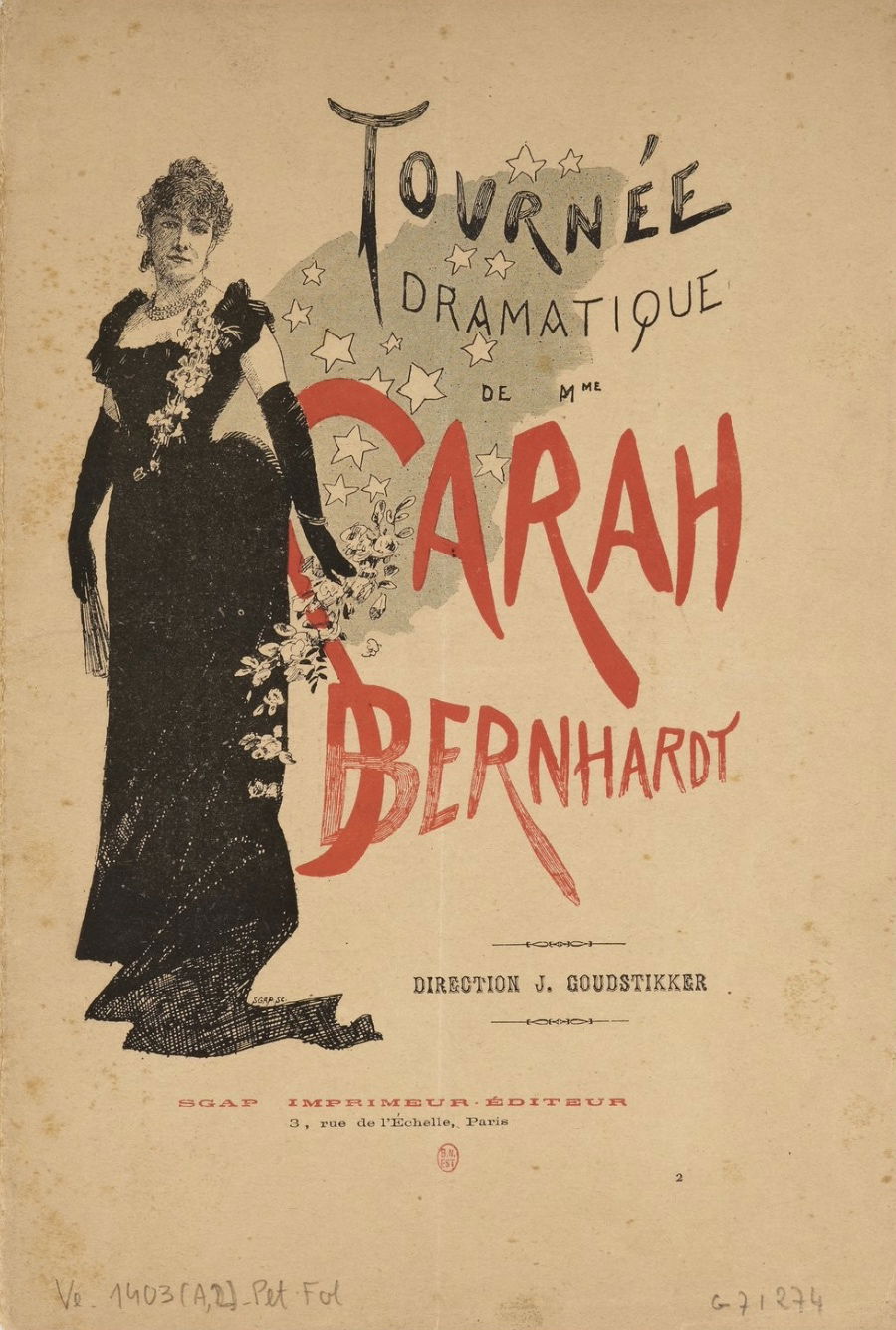 Tournée dramatique de Mme Sarah Bernhardt : Direction : Goudstikker. 1888. Source gallica.bnf.fr / BnF