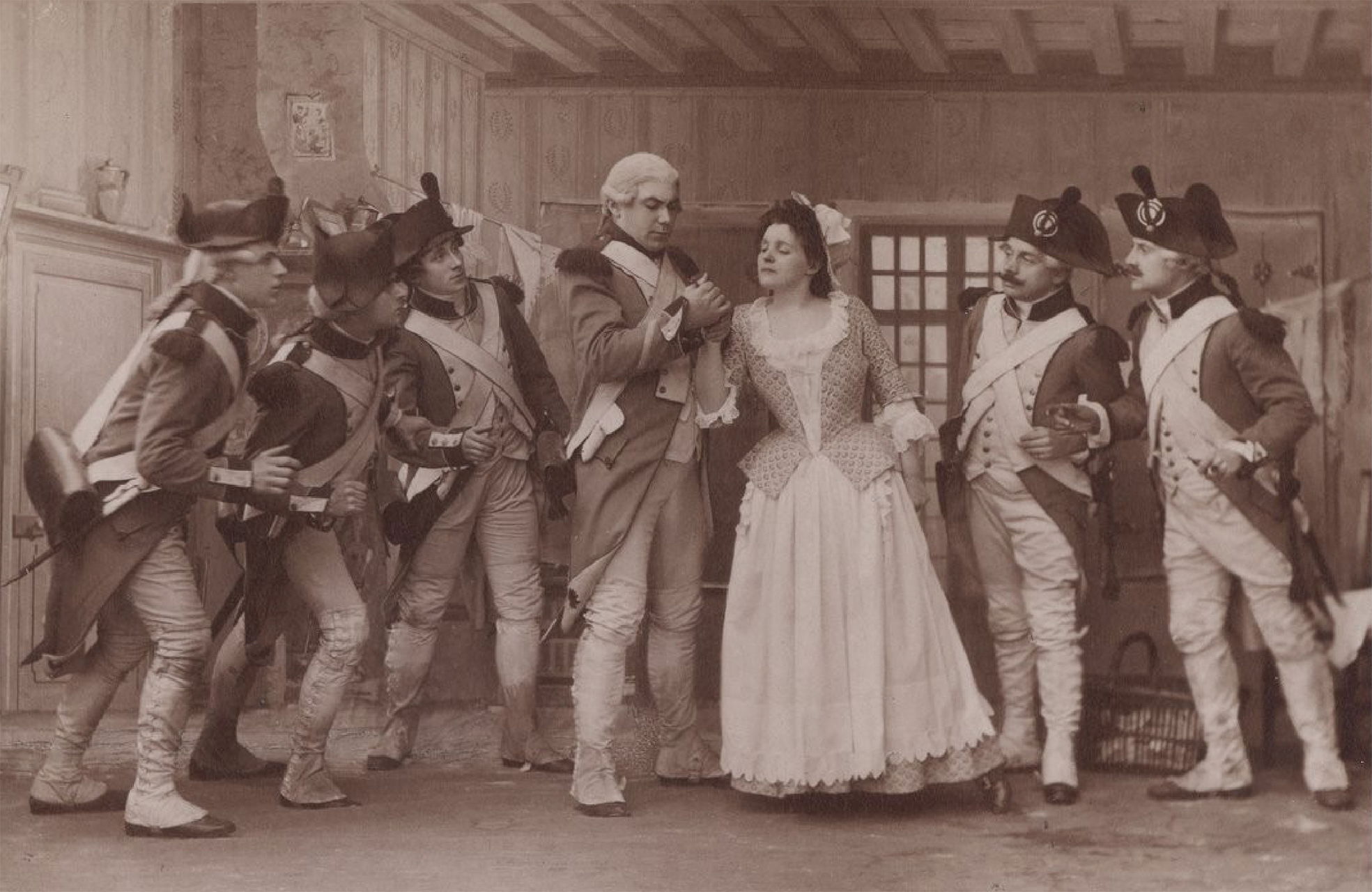 Me Réjane et les soldats. (Vaudeville). Madame Sans Gêne. Atelier Nadar]. 1893. Source gallica.bnf.fr / BnF.