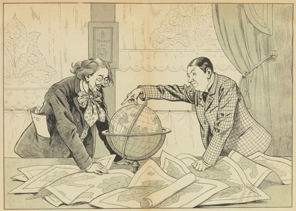 Emballement de l’Impresario qui signe à l’auteur un contrat par lequel il s’engage à faire une immense tournée avec sa pièce ; il décrit sur la mappemonde l’itinéraire de la tournée.