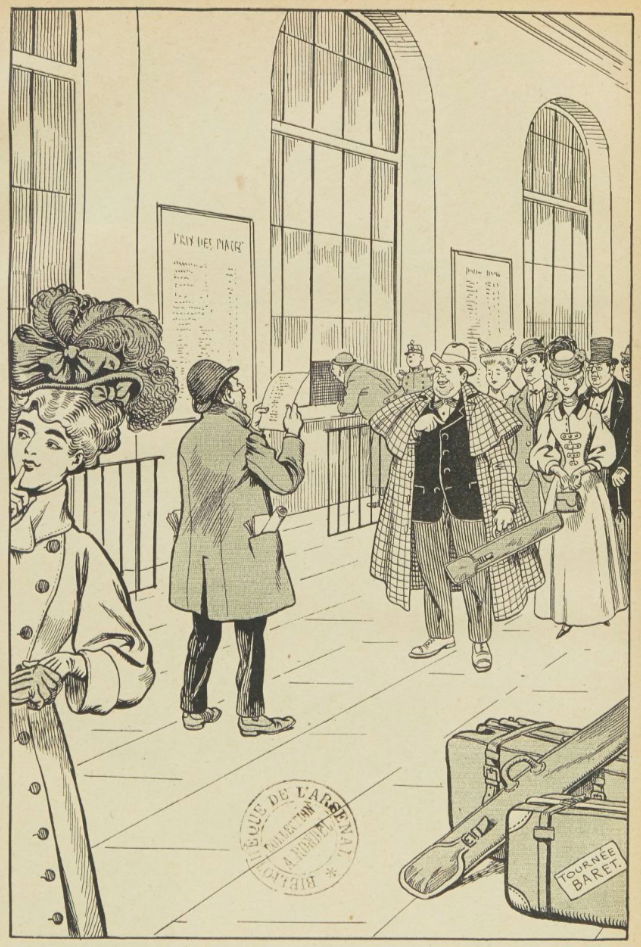 Préface. Les comédiens en voyage ! Ce serait un bien joli chapitre de l’histoire de nos mœurs artistiques et même de notre art dramatique, car avec Scarron et Molière, la province a connu avant Paris une des meilleures veines du théâtre comique et burlesque. Ces tournées de comédiens d’autrefois étaient fameuses par leur débraillé et leur pittoresque. Très longtemps même, et on peut dire jusqu’à ces dernières années, elles allaient çà et là, sans organisation, au hasard, jouant où elles trouvaient de la place, prenant le théâtre du lieu quand il était libre, se contentant à l’occasion d’une salle de café ou d’une grange. Les impresarii contemporains, et Charles Baret en tête, ont transformé radicalement l’économie de ces voyage. Mieux que personne, Baret les a organisés d’une façon véritablement bureaucratique : l’art n’y perd rien et l’ordre y gagne, et par conséquent les spectateurs. Avec les services de publicité, l’agence pour engager les artistes, les salles d’audition et de répétitions, les bureaux d’un grand impresario d’aujourd’hui, comme Baret, sont un Ministère. Ses tournées font chaque année plusieurs fois le tour du monde, et les dessins de JOB qui vous en représentent une jouant devant le Sultan, une autre visitant les Pyramides, une troisième glissant en gondole sur les canaux vénitiens, sont réalité et l’exactitude même (…). (…) Les dessins que vous allez apercevoir sitôt la page tournée vous donneront une idée humoristique des occupations d’un impresario et de sa vie familière, au début du vingtième siècle (…).