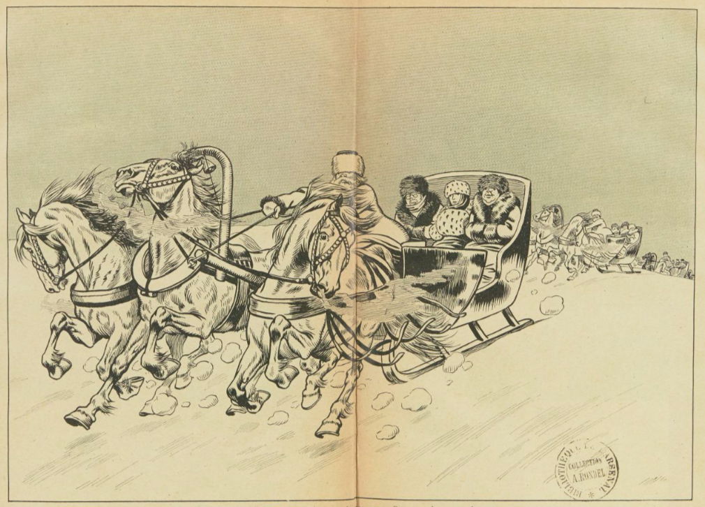 En Russie : la troupe en traineau par 30° au-dessous de zéro.