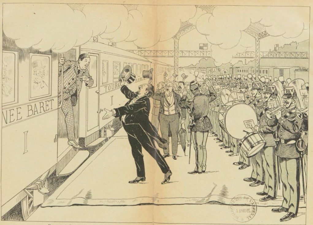 Rentrée à Paris. Le Ministre et la musique de la Garde Républicaine attendent l’arrivée de la troupe.