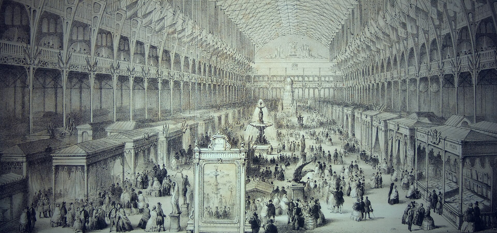 L’exposition se déroule dans un bâtiment spectaculaire devenu célèbre : le Crystal Palace, immense palais de verre et de fonte imaginé par Joseph Paxton. Par sa taille et sa transparence, cette architecture marque les esprits et symbolise l’optimisme technique du 1800.