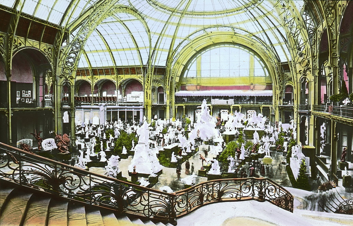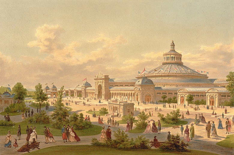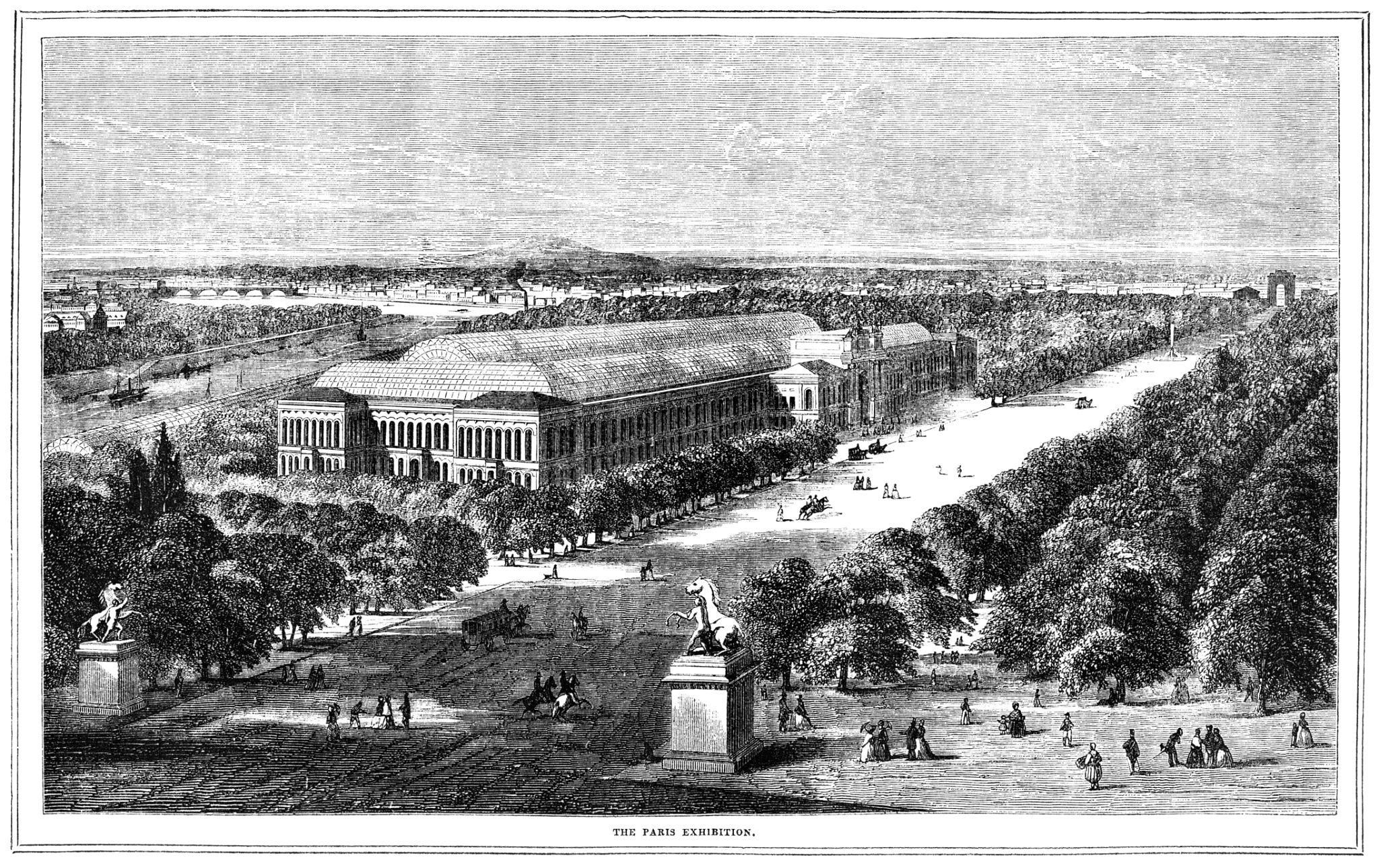 L’exposition est installée sur les Champs-Élysées, dans un vaste bâtiment construit spécialement pour l’événement : le Palais de l’Industrie, immense structure de pierre, de fer et de verre qui symbolise la modernité architecturale du milieu du 1800.