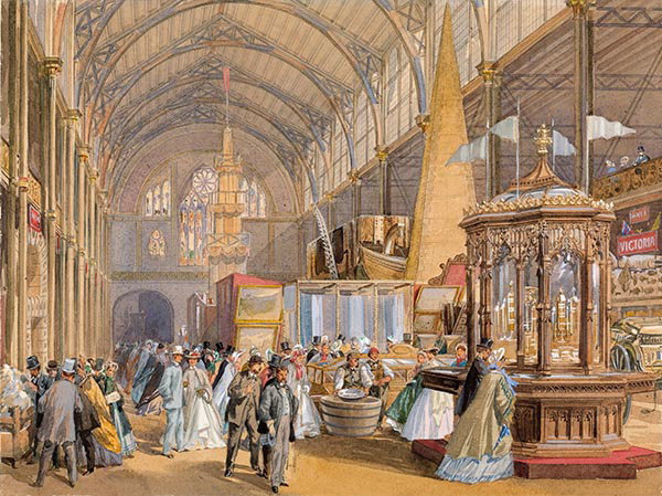Joseph Nash, La grande nef de l’Exposition Universelle de 1862, aquarelle, 1863. Bibliothèque nationale de la collection de tableaux de Victoria, Londres.