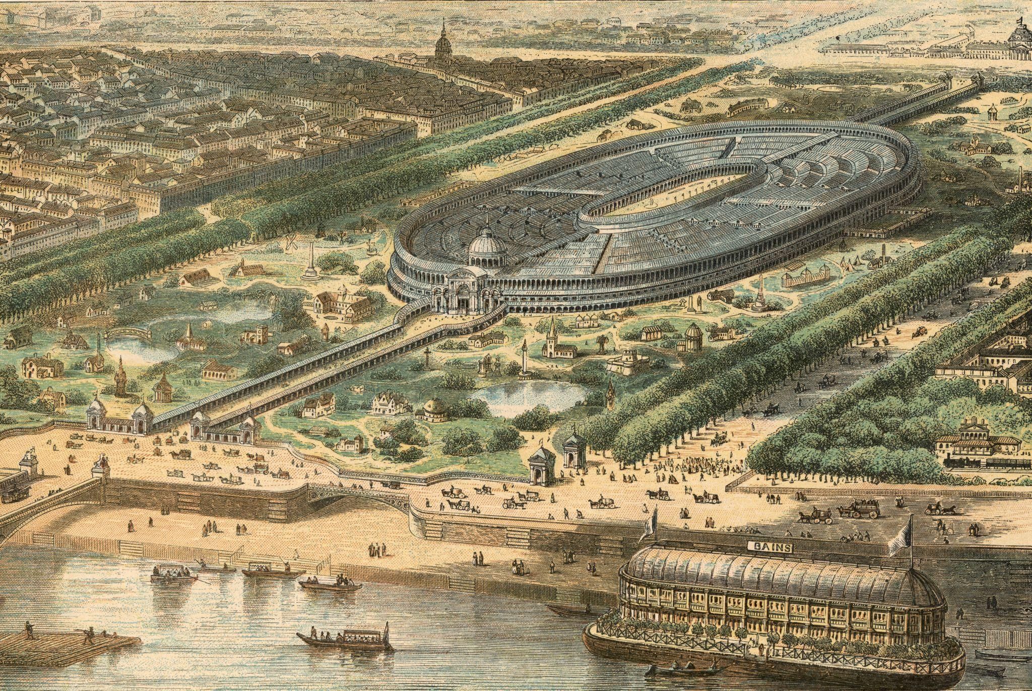 La première exposition universelle moderne est organisée en 1851 à Londres, dans le Crystal Palace.Au cours des années 1800, Paris devient l’une des grandes capitales de ces manifestations, accueillant plusieurs expositions majeures qui marquent durablement l’histoire urbaine et culturelle.