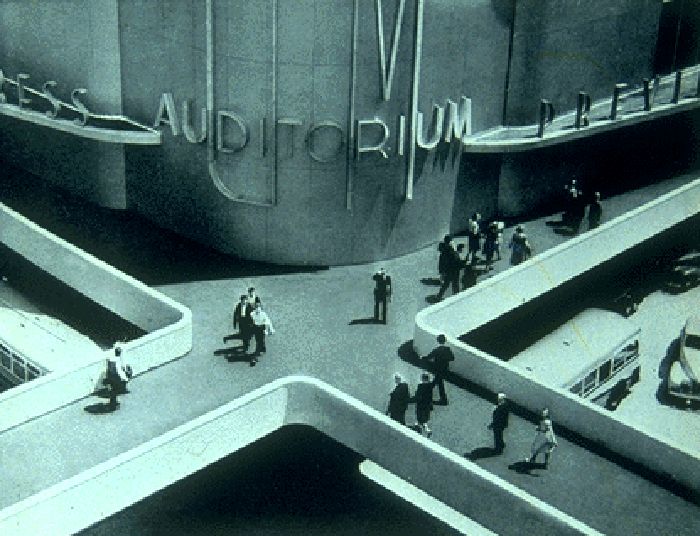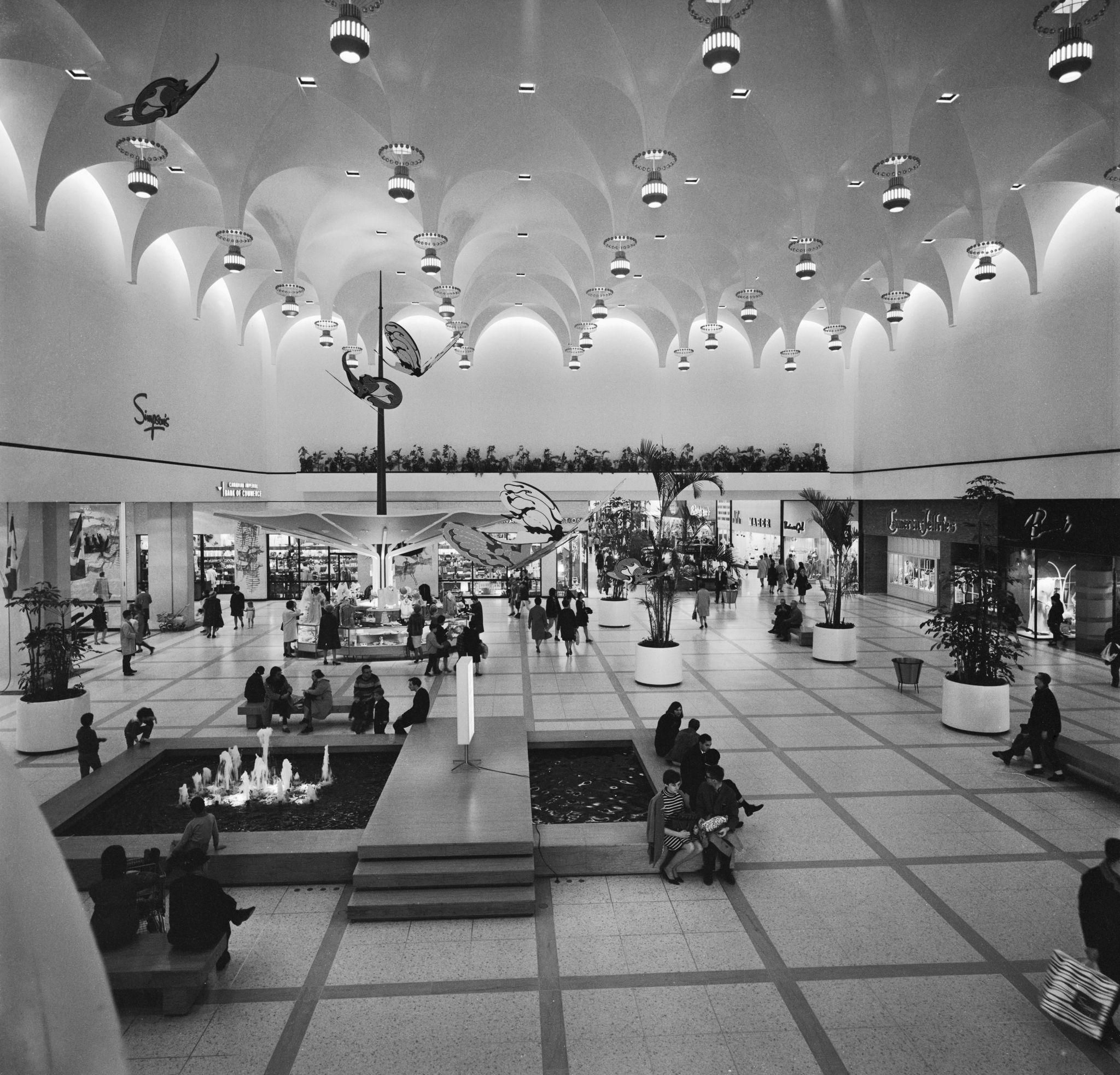 Intérieur d’un pavillon de l’Exposition universelle de Montréal (Expo 67), où les visiteurs découvraient des espaces d’exposition modernes mêlant architecture futuriste, installations culturelles et innovations technologiques venues du monde entier.