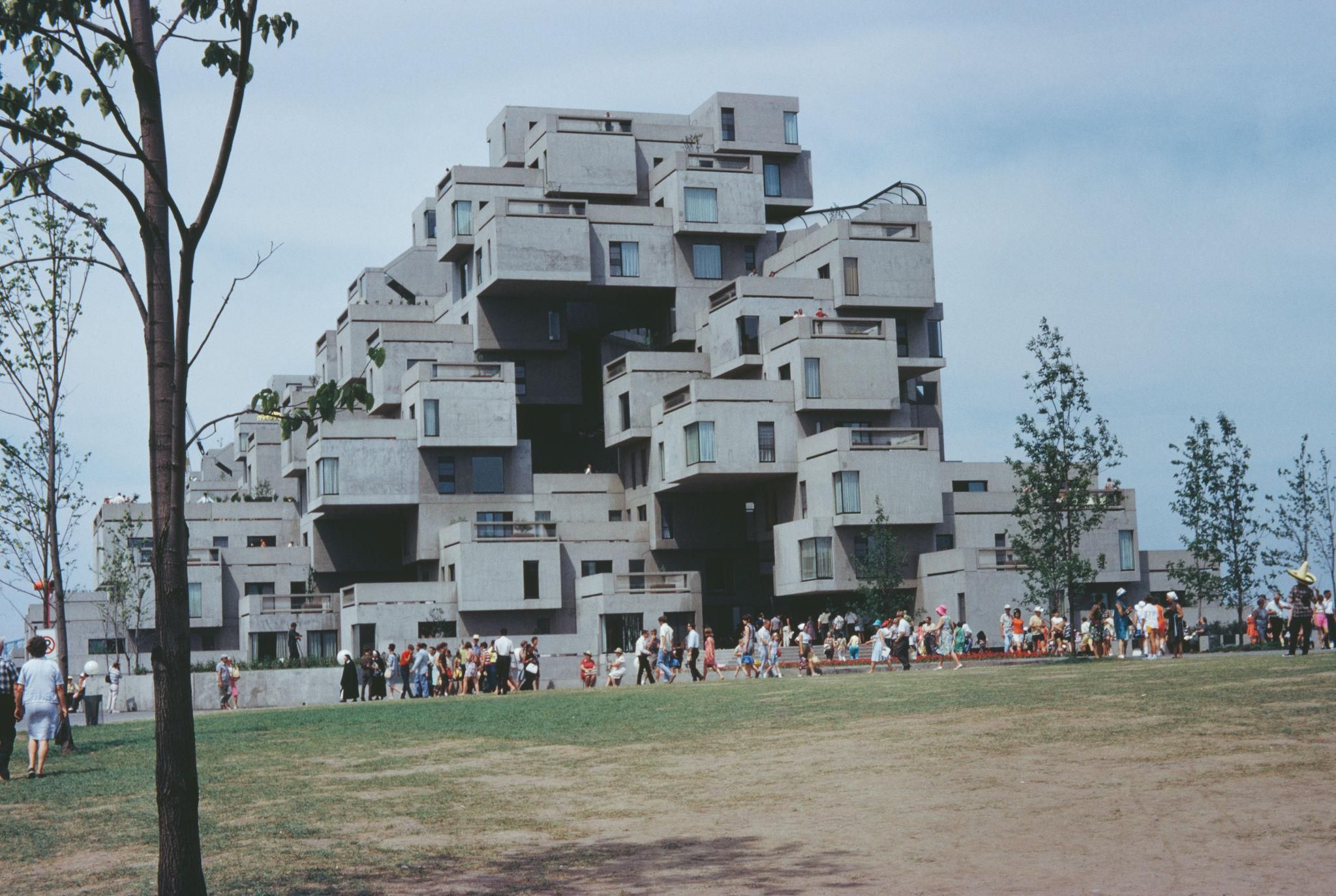 Habitat 67, complexe résidentiel expérimental conçu pour l’Exposition universelle de Montréal de 1967 par l’architecte Moshe Safdie, symbole d’une nouvelle vision de l’architecture urbaine.