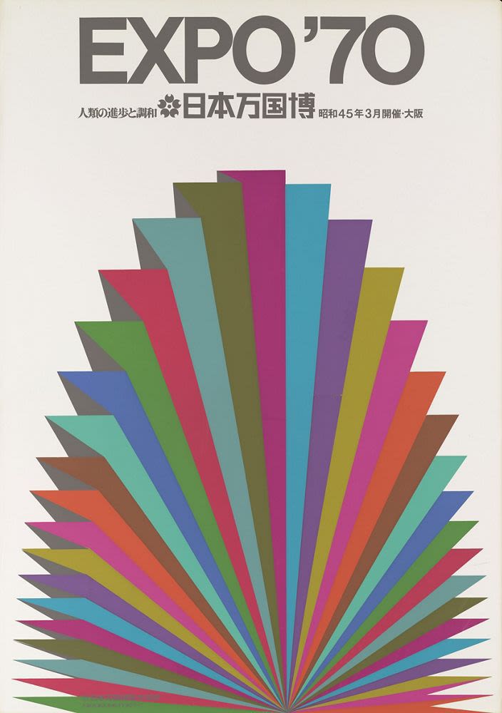 Affiche officielle de l’Exposition universelle d’Osaka (Expo ’70), organisée au Japon du 15 mars au 13 septembre 1970 sous le thème « Progrès et harmonie pour l’humanité », première exposition universelle tenue en Asie.