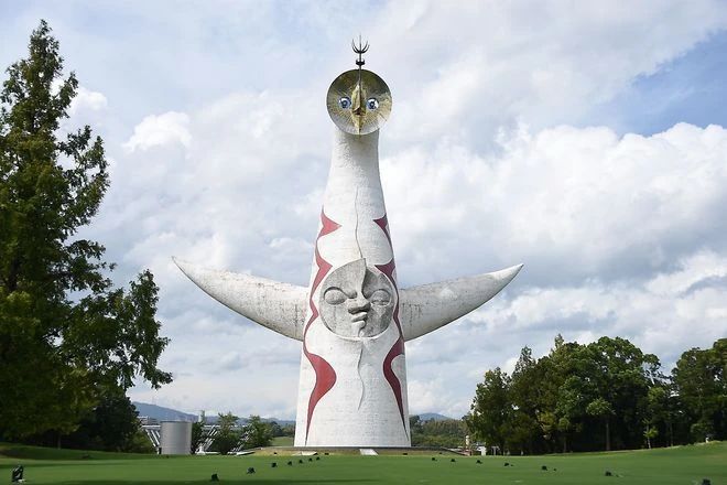 La Tour du Soleil, sculpture monumentale réalisée par l’artiste Tarō Okamoto pour l’Exposition universelle d’Osaka de 1970, symbole artistique et architectural de l’Expo ’70.