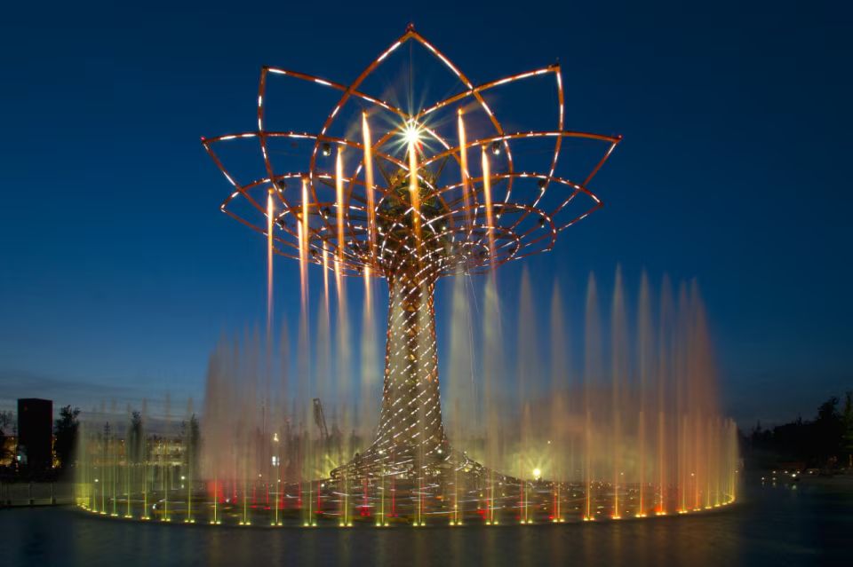 L’un des symboles les plus célèbres de l’exposition est le « Tree of Life » (Arbre de la Vie), grande structure monumentale installée au centre du site. Ce dispositif spectaculaire associe architecture, jeux d’eau et éclairages, devenant l’une des attractions majeures de l’événement.