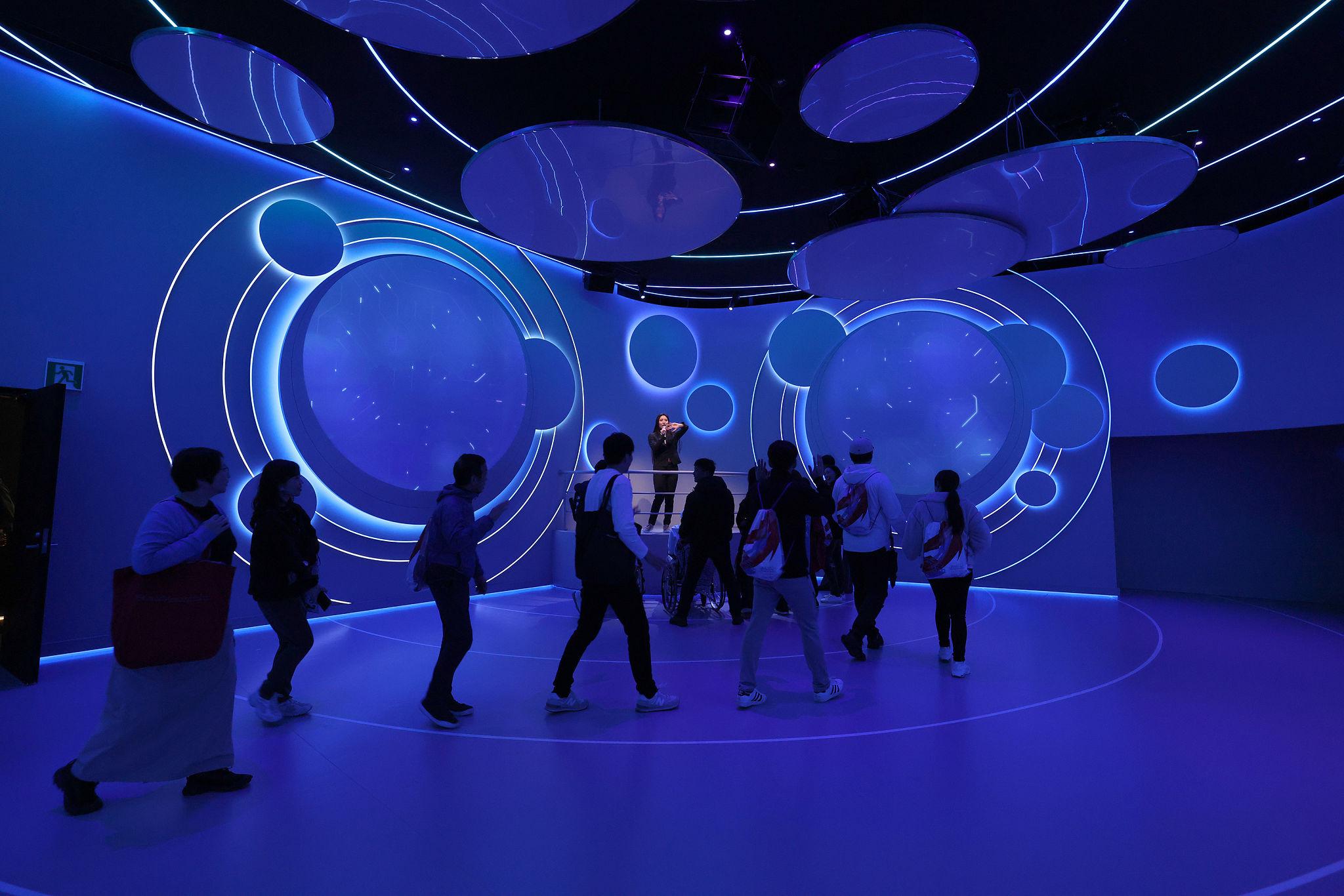 De nombreuses installations utilisent les technologies numériques, les expériences immersives et les dispositifs interactifs, illustrant l’évolution des expositions universelles vers des formes de présentation plus technologiques et participatives.