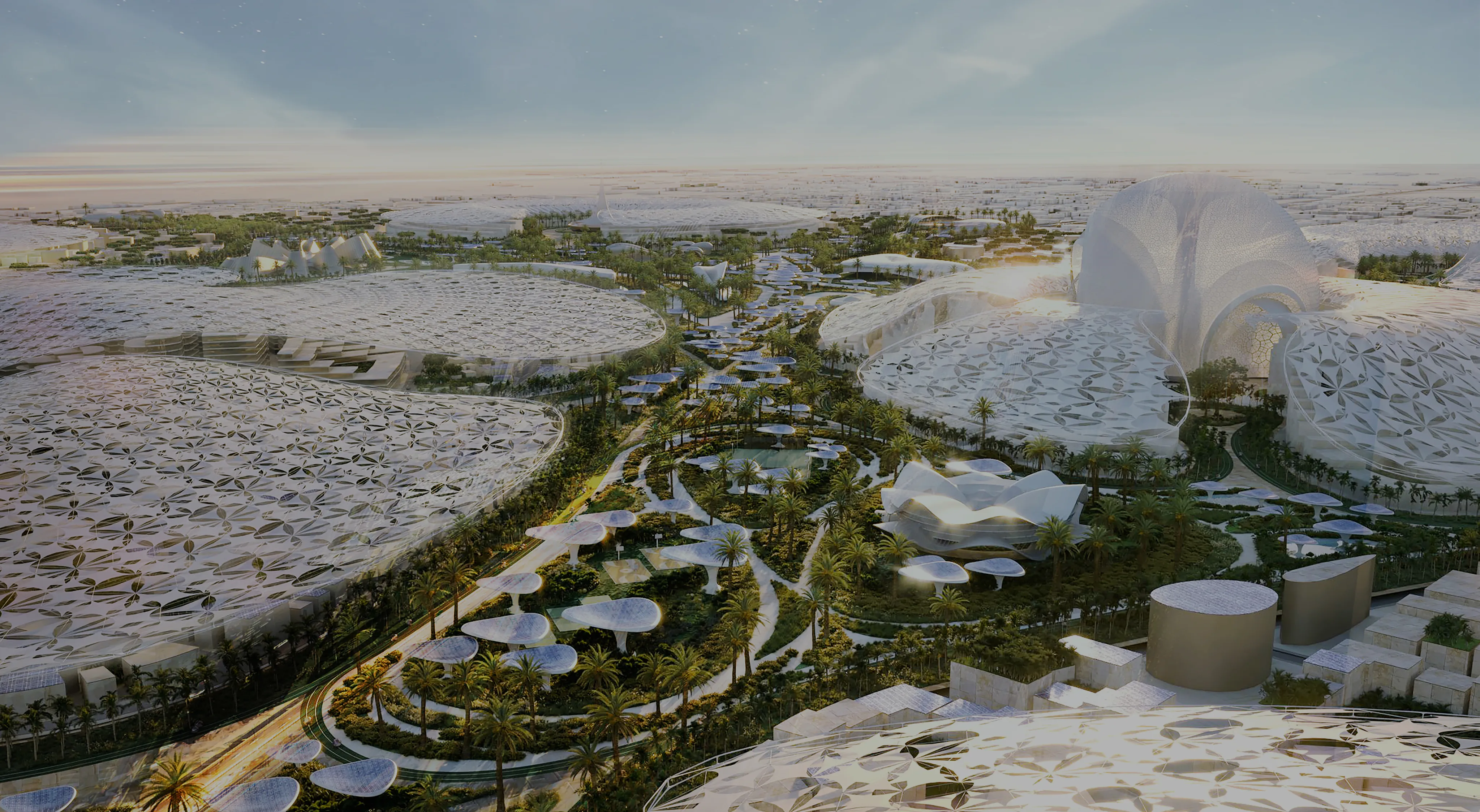 Le cœur du site est la spectaculaire Al Wasl Plaza, immense dôme de près de 130 mètres de diamètre qui sert d’espace central pour les spectacles, projections et événements culturels. Ce dôme devient l’une des images emblématiques de l’exposition.