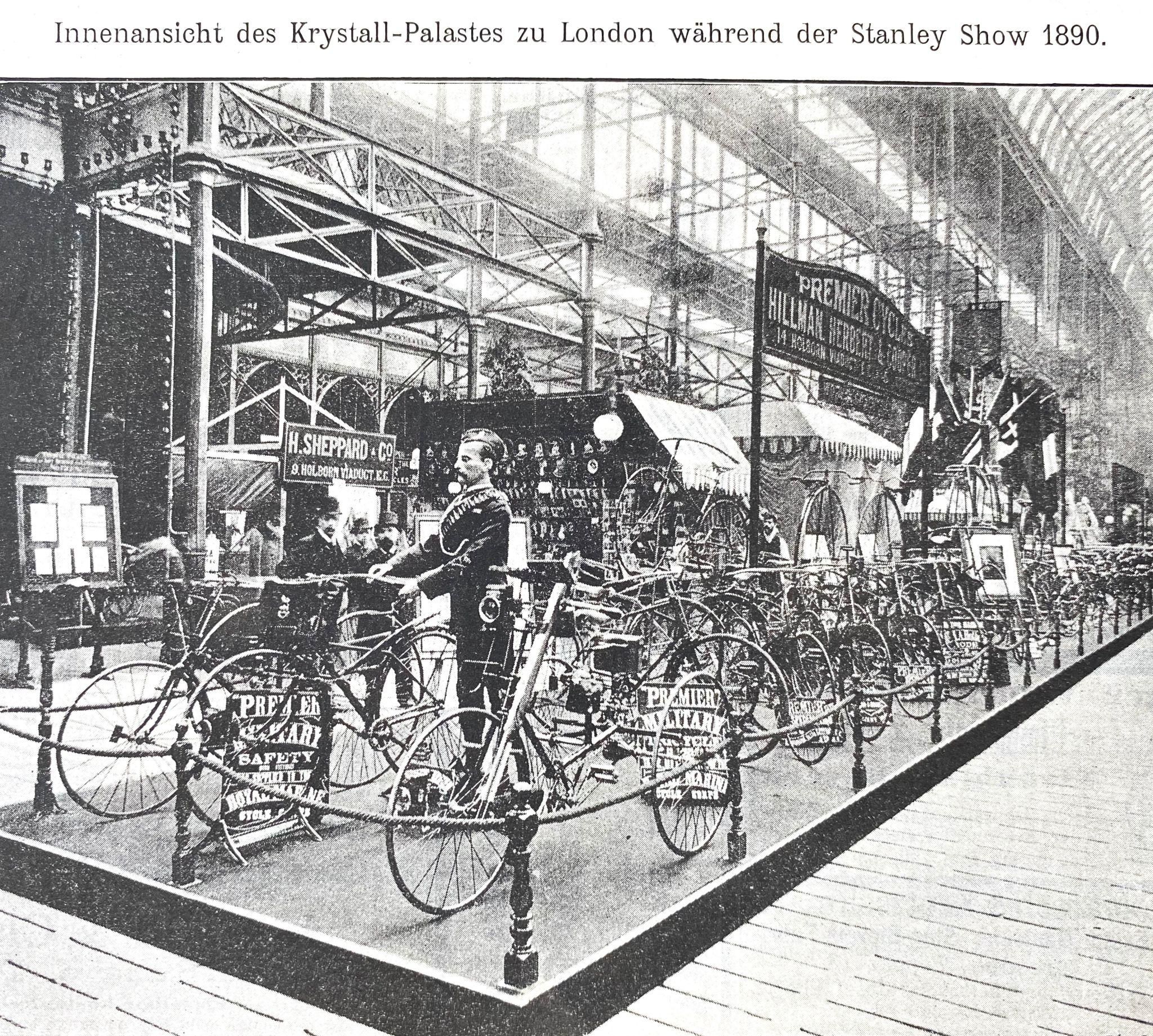 La Stanley Show de 1890 au Crystal Palace marque l’une des premières grandes expositions spécialisées consacrées au cycle, encore héritières des expositions industrielles.