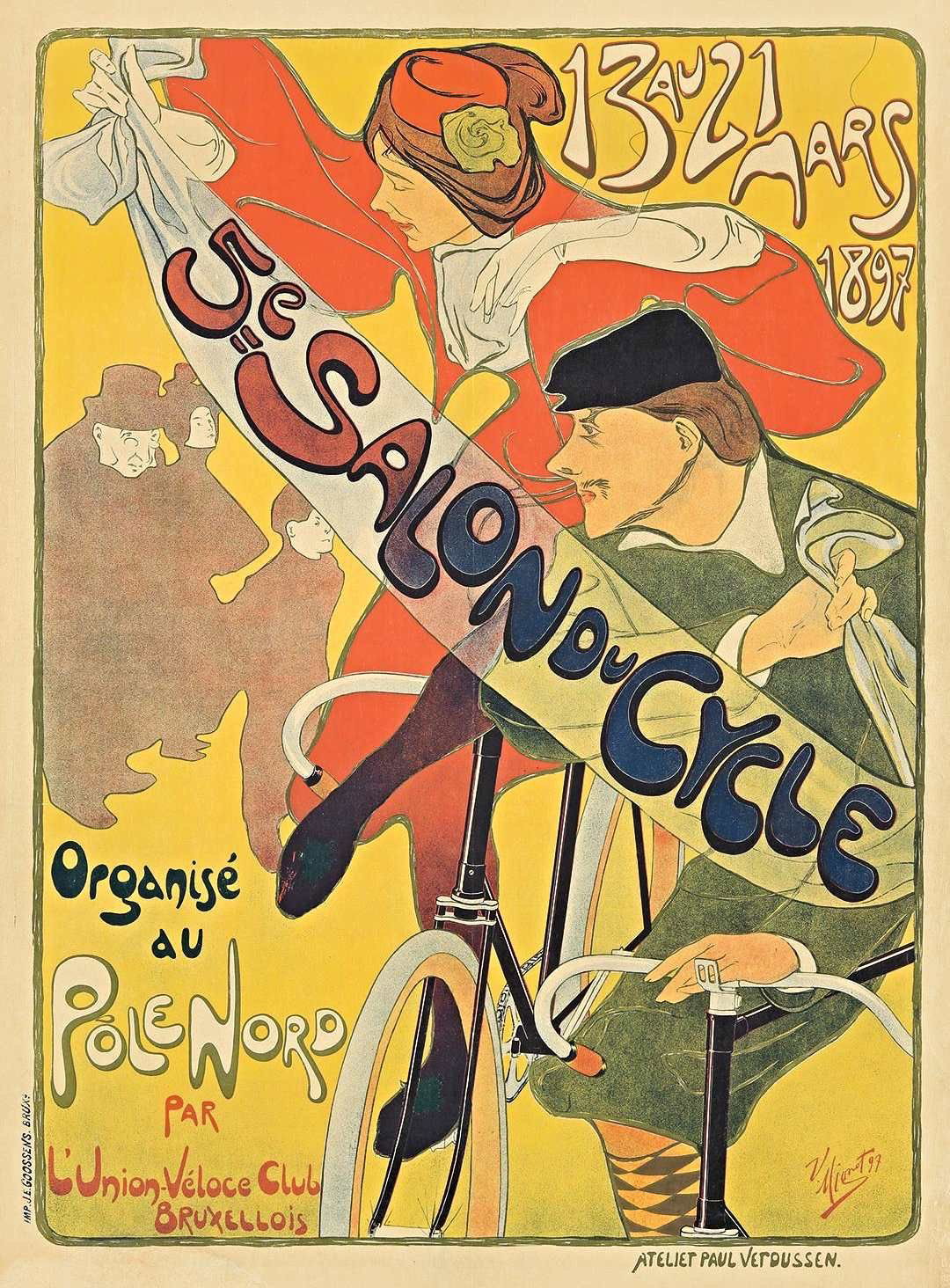 Salon du Cycle, Bruxelles, Pôle Nord, 13–21 mars 1897 : exposition organisée par l’Union vélocipédique bruxelloise, dédiée à la présentation des cycles et de leurs usages.