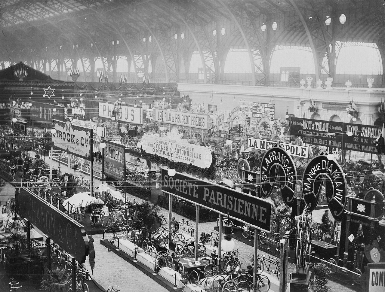 Paris, Salle Wagram, du 10 au 21 janvier 1894 : premier grand rendez-vous structuré dédié au cycle, réunissant fabricants, innovations et usages civils et militaires.