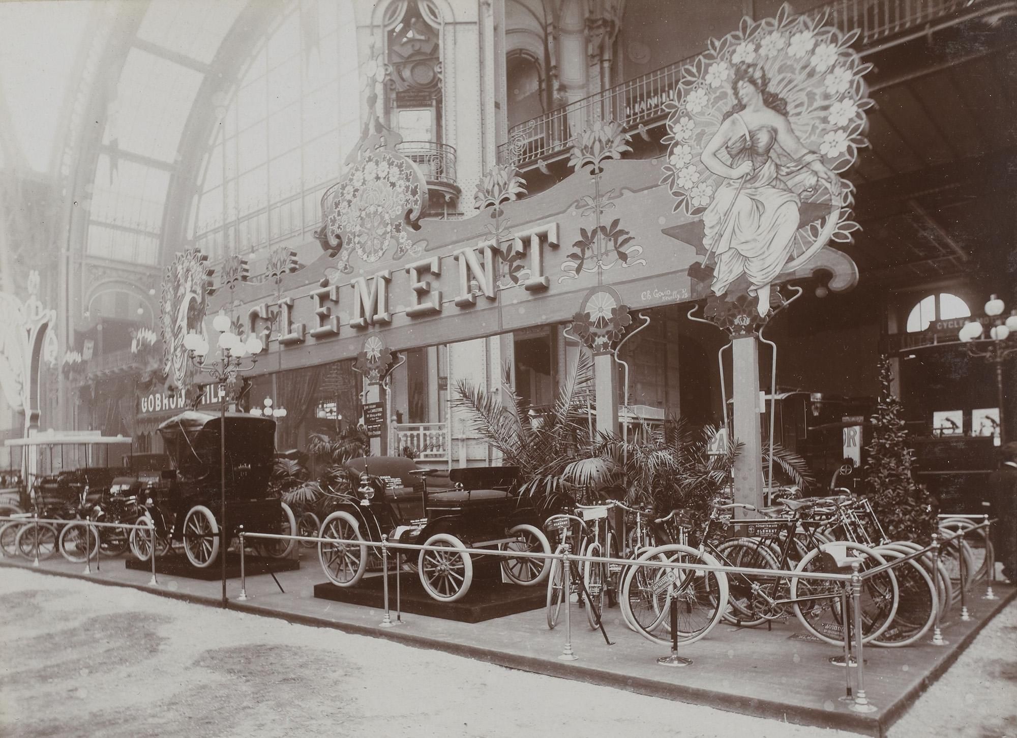 Stand Clément, Salon de l’automobile, du cycle et des sports, Paris, 1901 : du vélo à l’automobile, une industrie en mutation.