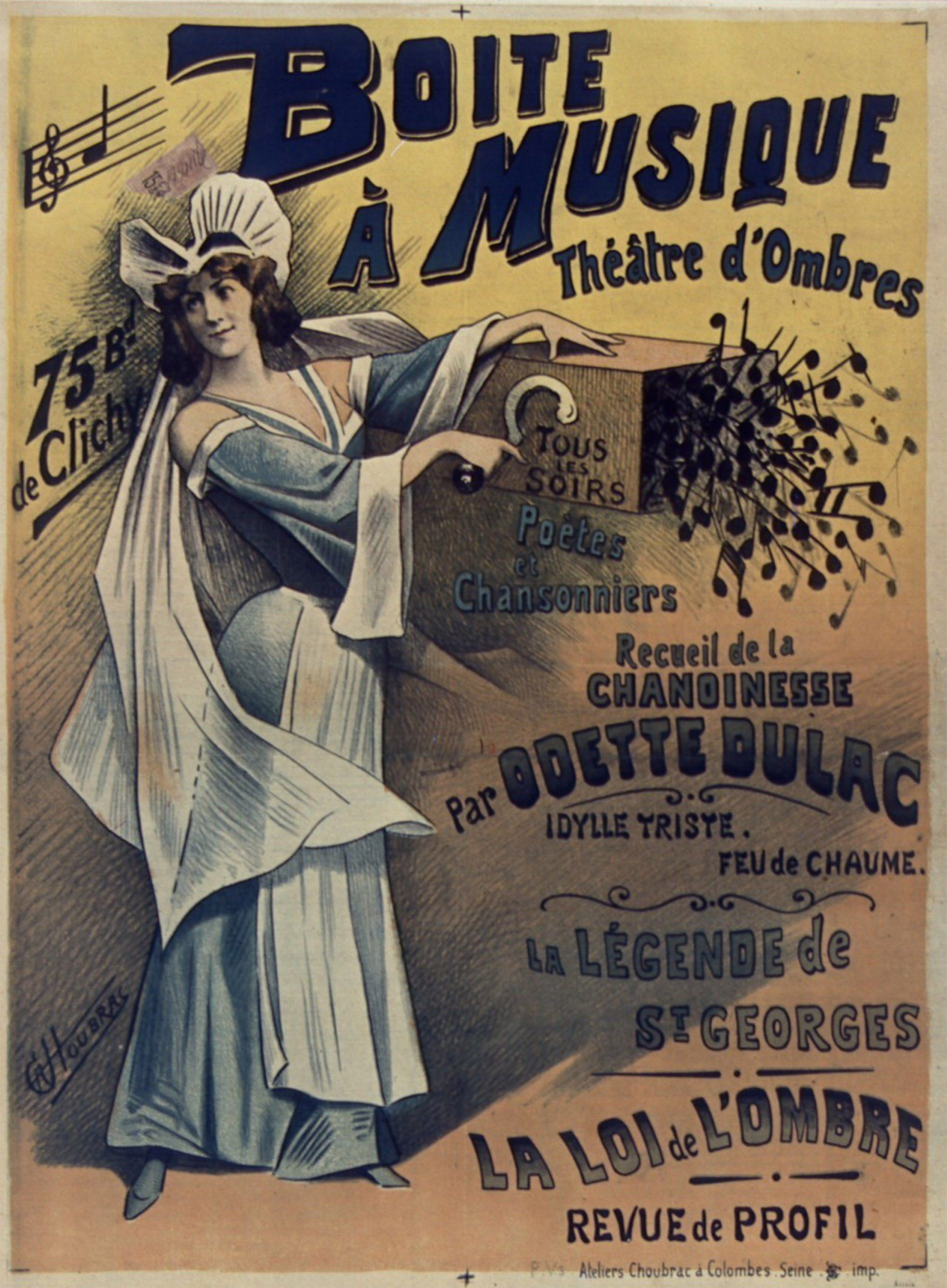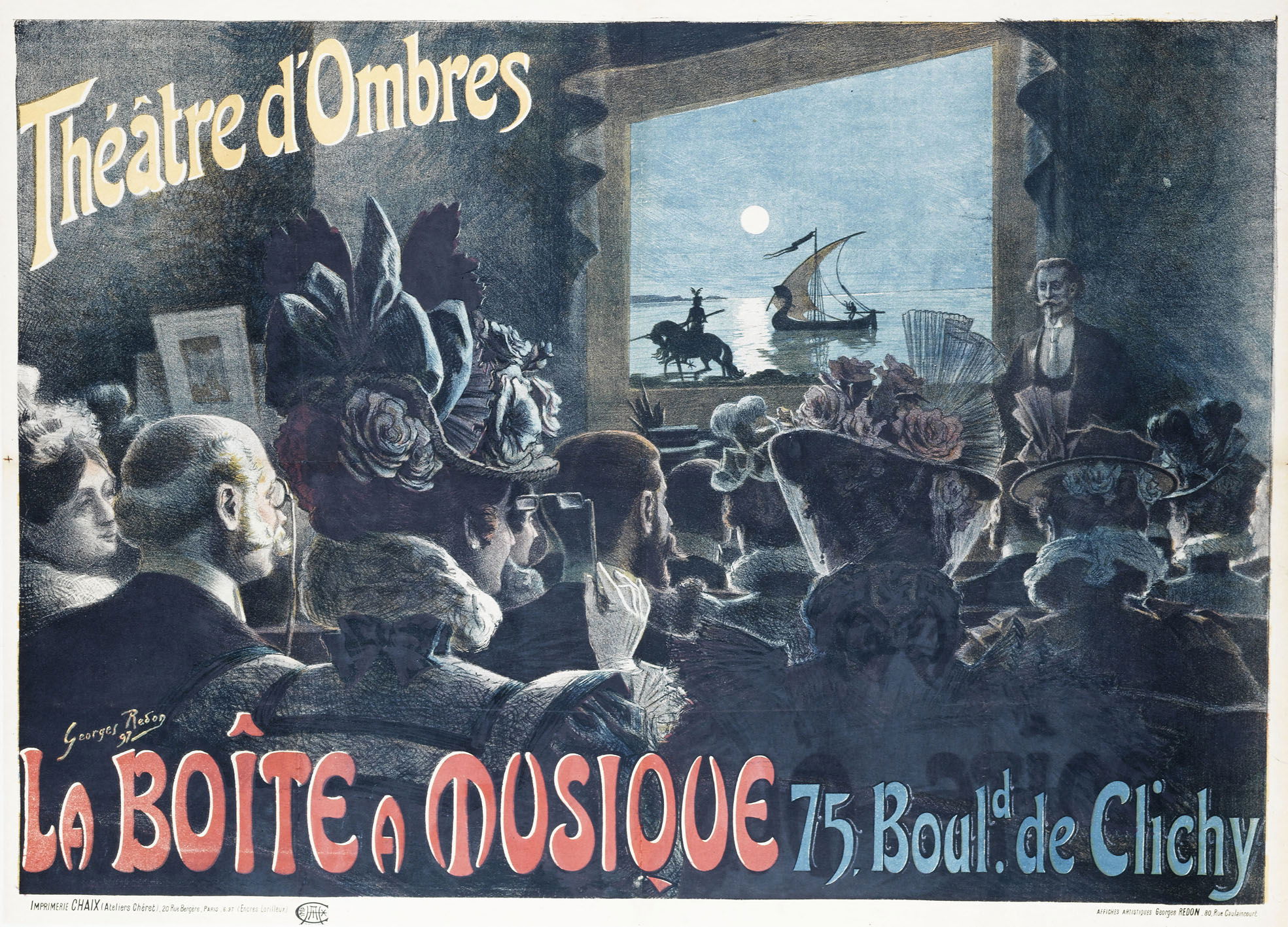 Théâtre d'Ombres. La boite à musique. 75, Bould. De Clichy. Redon, Georges, Dessinateur. Imprimerie Chaix, Imprimeur. En 1897. Musée Carnavalet.