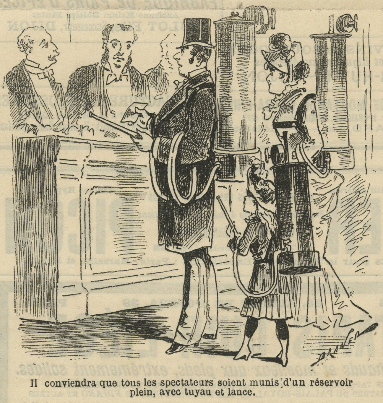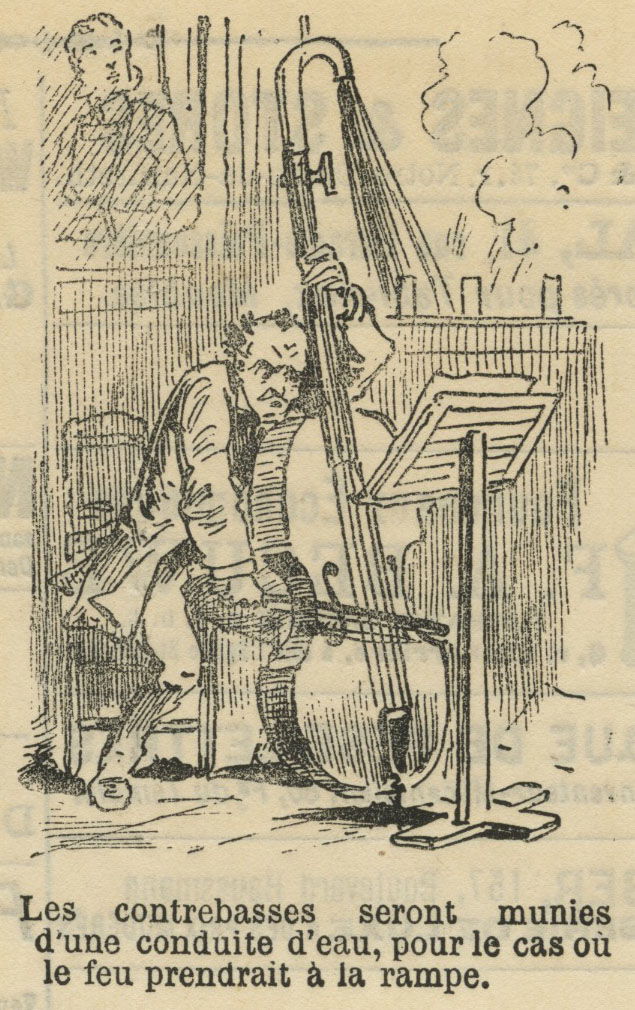 Les dessins, souvent accompagnés de courts dialogues, privilégient l’efficacité du trait et la justesse de l’observation. Artistes, chanteurs, machinistes, spectateurs ou directeurs de théâtre y sont croqués sans indulgence, mais avec une ironie familière, plus souriante que cruelle. Le théâtre y apparaît comme un microcosme vivant, traversé de rivalités, de vanités et de situations absurdes.