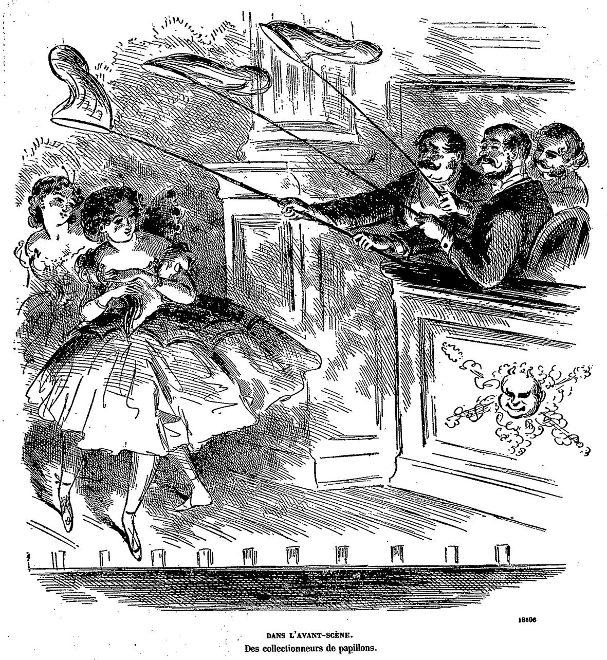 Dans le numéro du 11 mai 1861, Marcelin croque avec humour et perfidie le ballet Le Papillon, offrant un regard mordant sur les danseuses, le public et les usages mondains de l’Opéra.