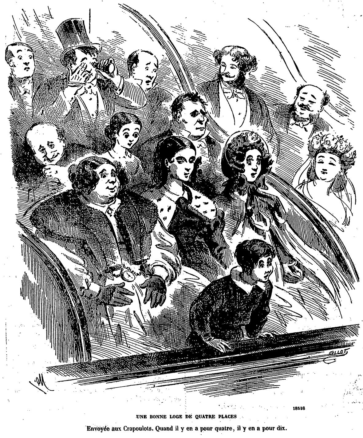Une bonne loge de quatre places ‘Envoyée aux Crapoulots. Quand il y a pour quatre, il y en a pour dix.’