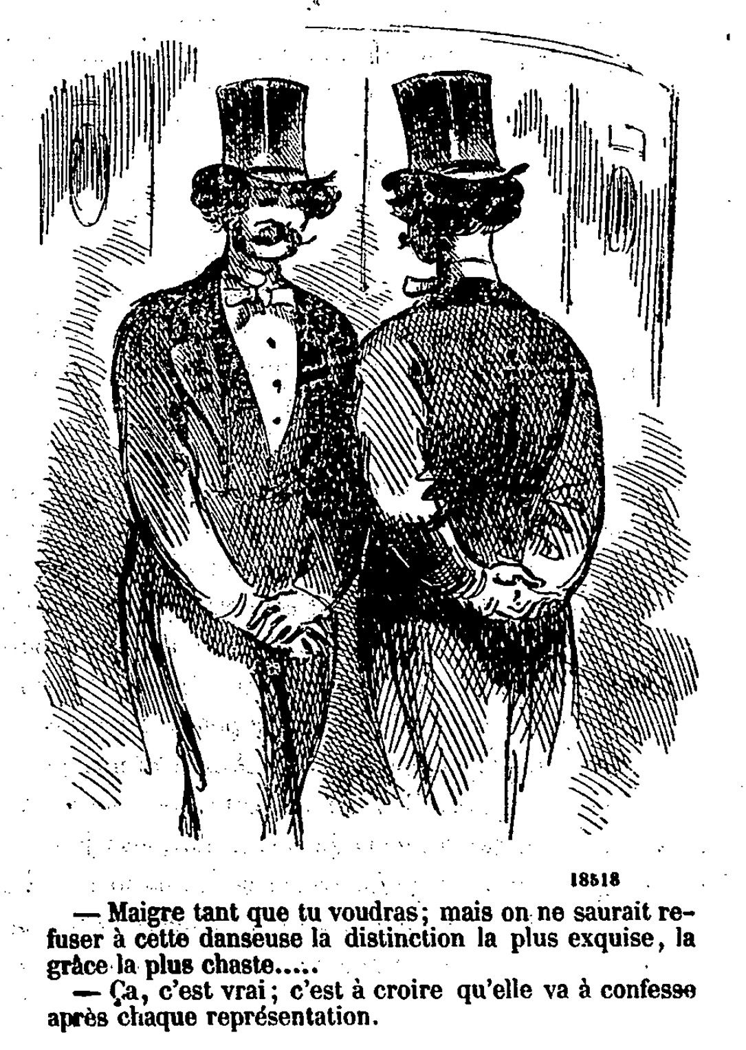 . Maigre tant que tu voudras ; mais on ne saurait refuser à cette danseuse la distinction la plus exquise, la grâce la plus chaste … . Ç a, c’est vrai ; c’est à croire qu’elle va à confesse après chaque représentation.