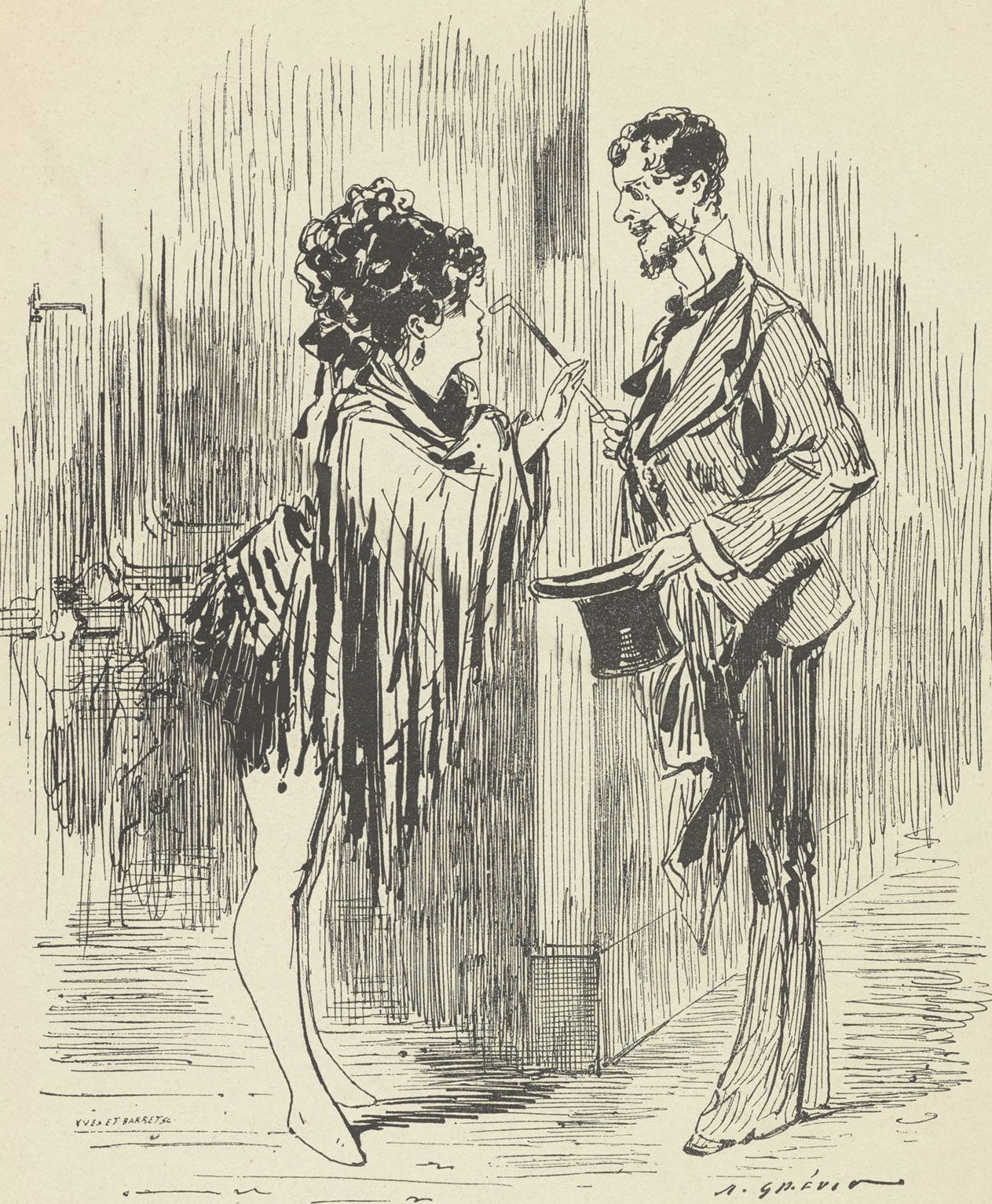 A l’Opéra. Au bal de l’Opéra Tu sais qu’le v’la qu’i’ file, not’ bonhomme de tout à l’heure. Sans personne ? Sans personne. P’tête qu’il est … mamaphrodique.